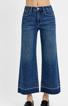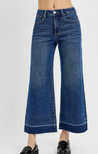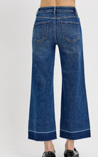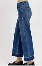 Elevate your style with these daring high-rise denim jeans featuring tummy control for a flattering, streamlined silhouette. The wide-leg cut and released hem create bold movement and effortless attitude, perfect for making a statement wherever you go. Embrace confidence and comfort in one fearless pair.