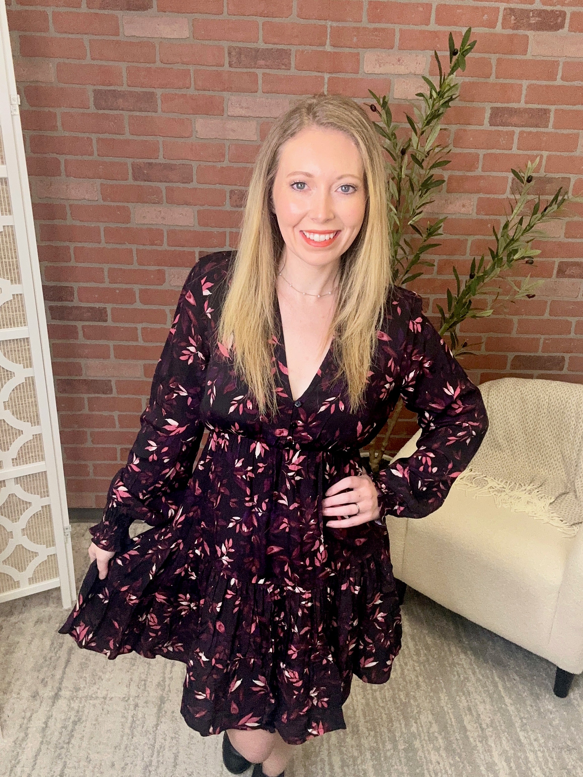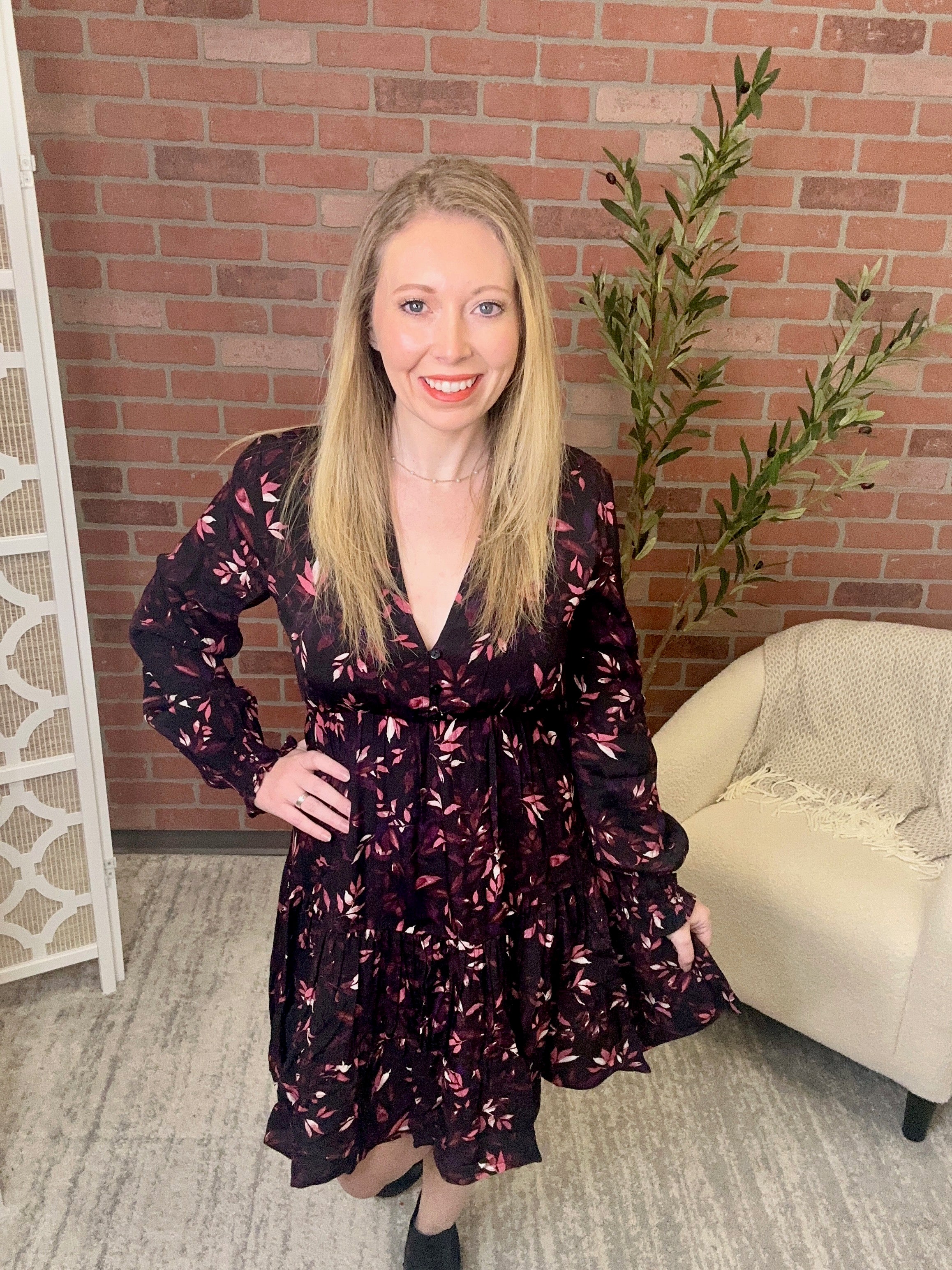 Twirl into fun vibes with this charming tiered dress! Cascading layers create effortless movement and dimension, while the trailing leaf motif brings nature-inspired elegance to your everyday look. Perfect for layering or wearing solo, this playful piece transitions seamlessly from casual outings to weekend adventures. The tiered silhouette flatters all figures and offers comfortable, breathable wear. Whether you're strolling through the farmers market or catching up with friends, this dress is your go-to for looking put-together without trying too hard.