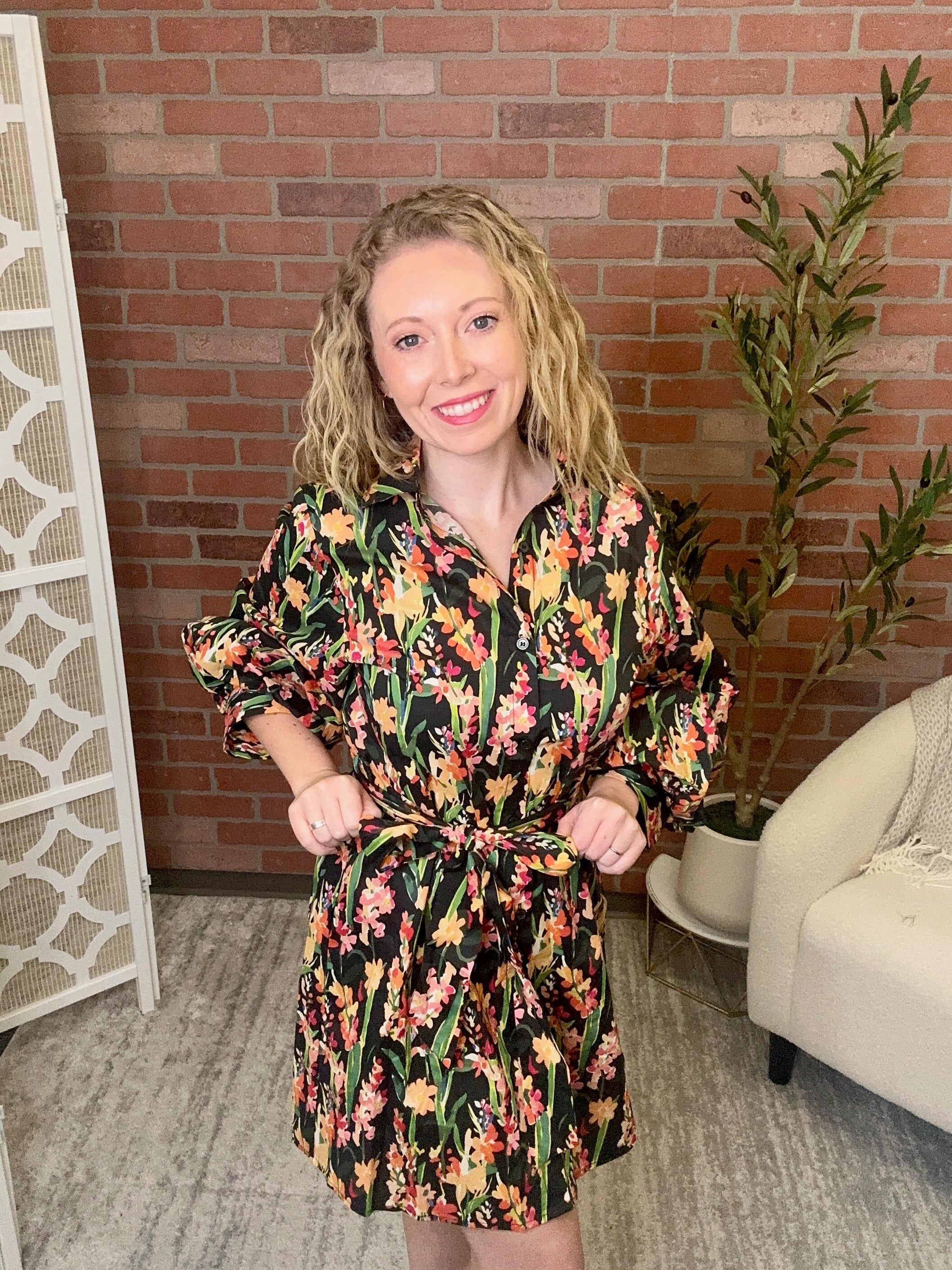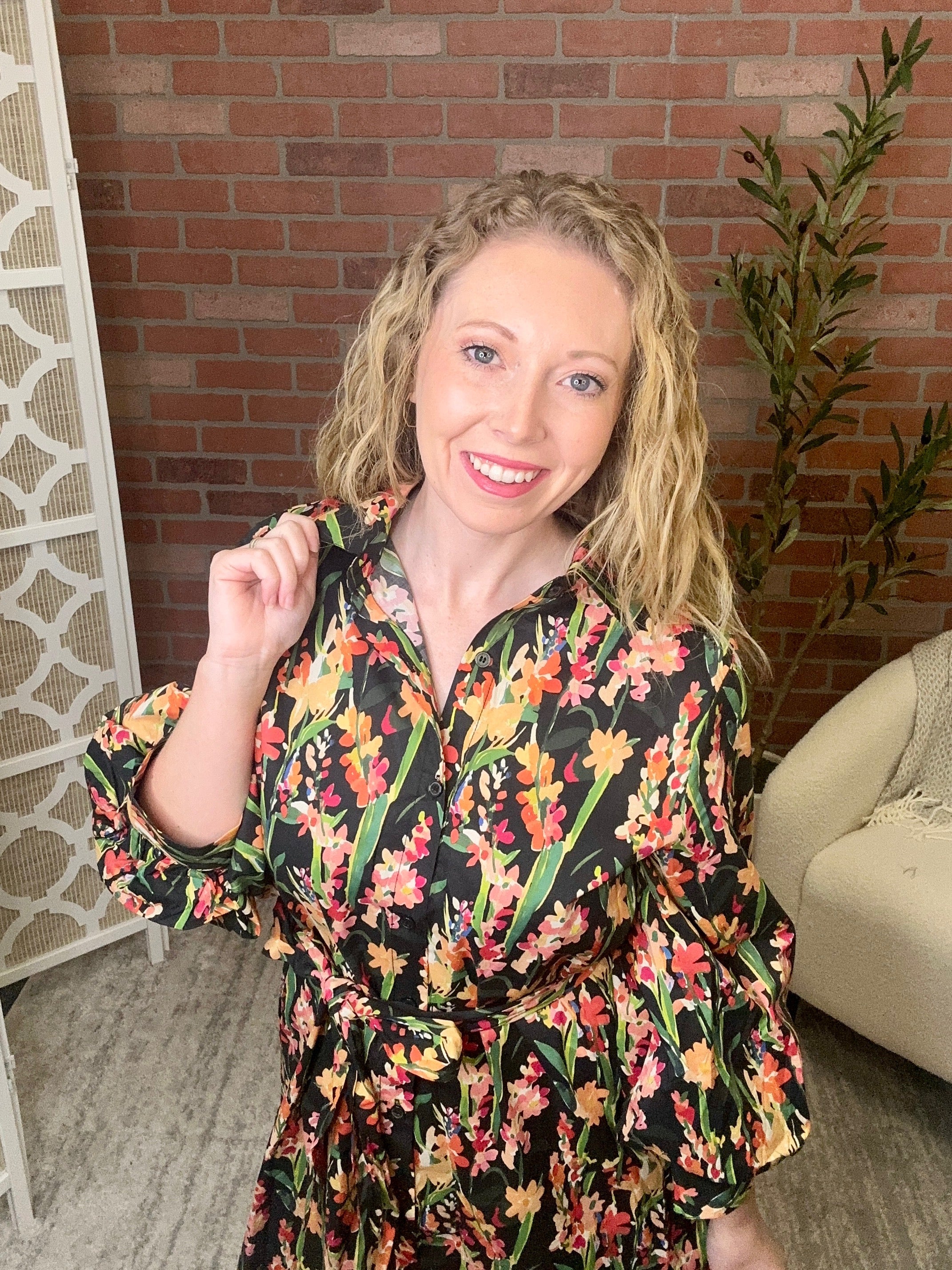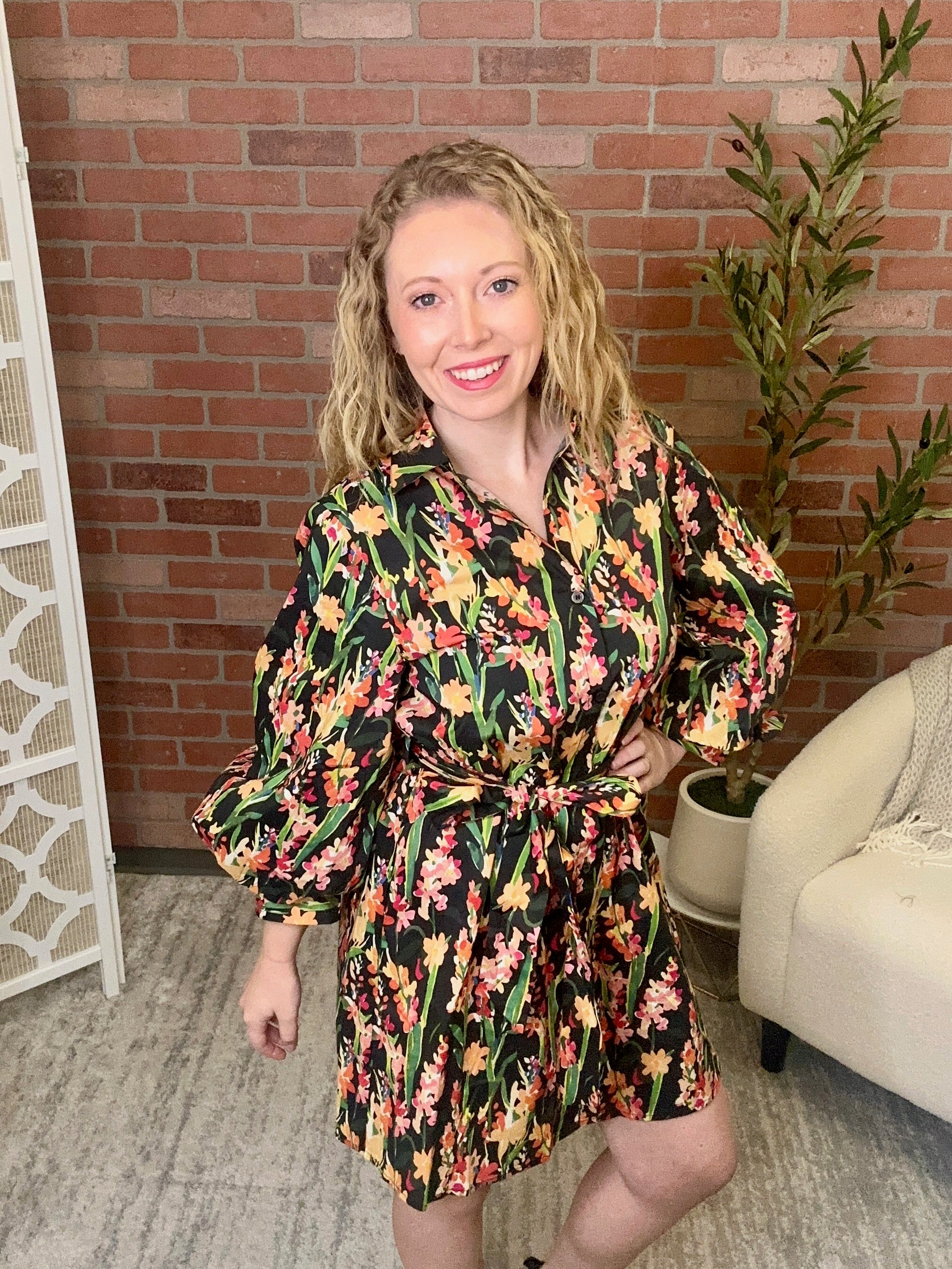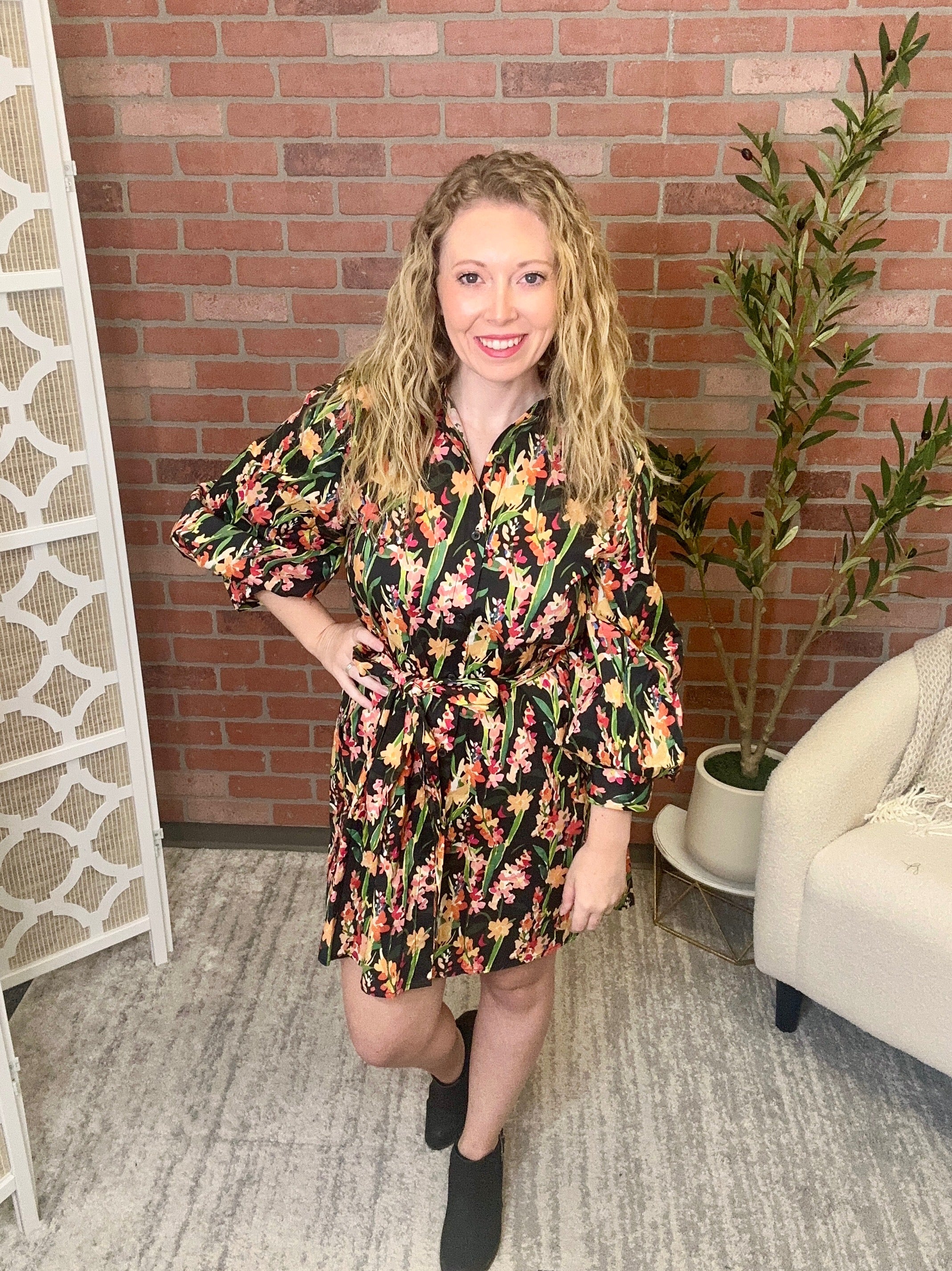 Twirl into spring with this charming floral dress that's equal parts sweet and sophisticated. The delicate button front adds a vintage-inspired touch, while the defined waist tie cinches you in all the right places for a flattering silhouette. Billowing balloon sleeves bring a whimsical, romantic vibe that's perfect for brunch dates or garden parties. Whether you're dressing it up with heels or keeping it casual with sneakers, this blooming beauty works overtime in your wardrobe.