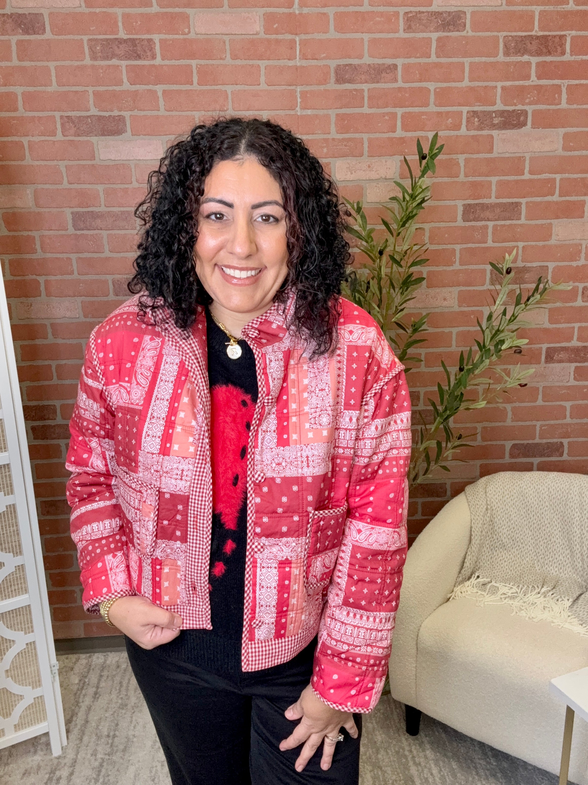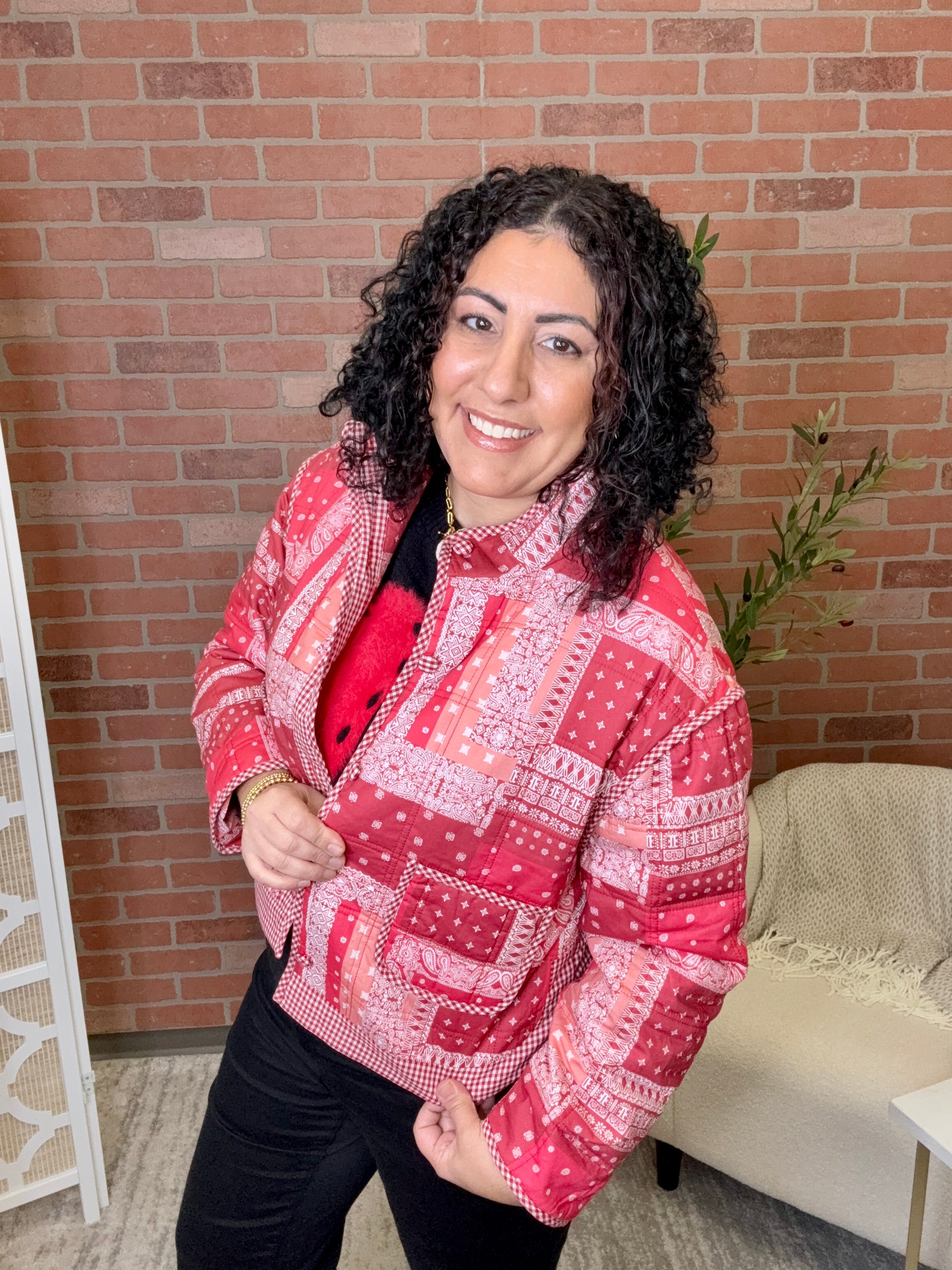 # Bandana Patchwork Jacket Mix and match your vibe with this one-of-a-kind patchwork jacket featuring bold bandana prints in a playful collage of colors and patterns. Each piece tells its own story, making this the perfect statement layer for anyone who refuses to blend in. Throw it on over your favorite tee or dress it up—this jacket is your ticket to effortless cool. Lightweight enough for layering, bold enough to turn heads.