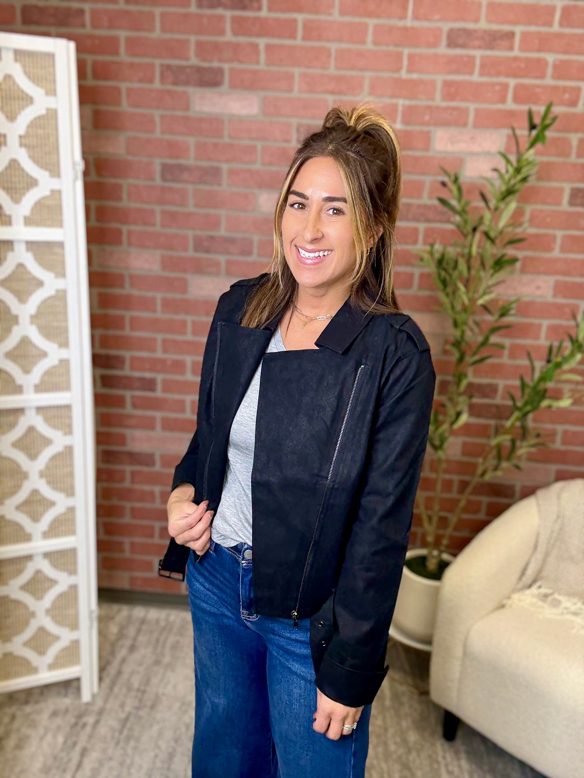 Rock your wardrobe with this versatile Belted Moto Jacket—the ultimate layering essential that works overtime. Throw it over dresses, tees, or sweaters for instant edge and attitude. The signature belt cinches your silhouette while the classic moto styling adds that cool-girl vibe to any outfit. Whether you're dressing up or keeping it casual, this jacket is your go-to piece for looking effortlessly put-together.