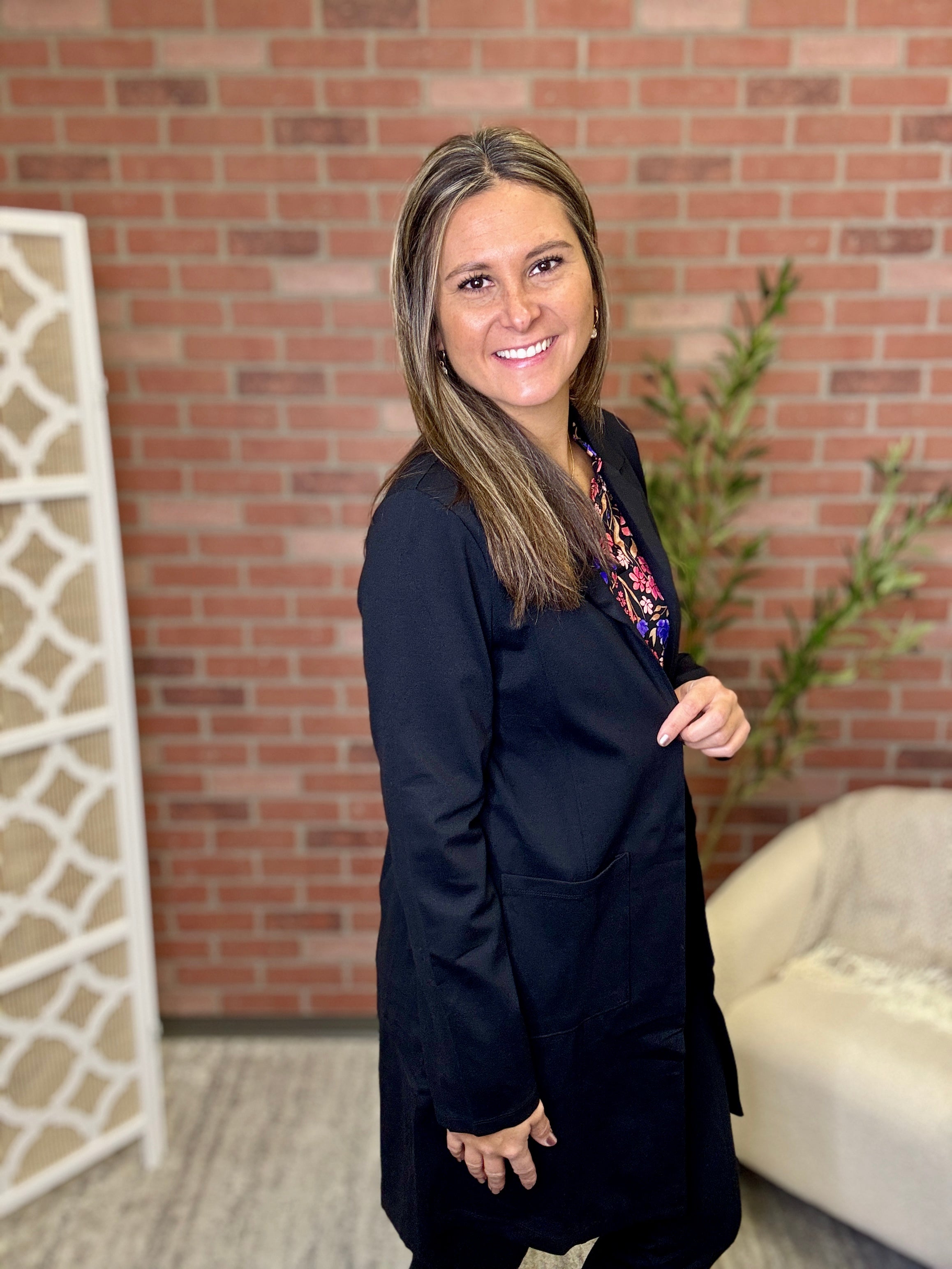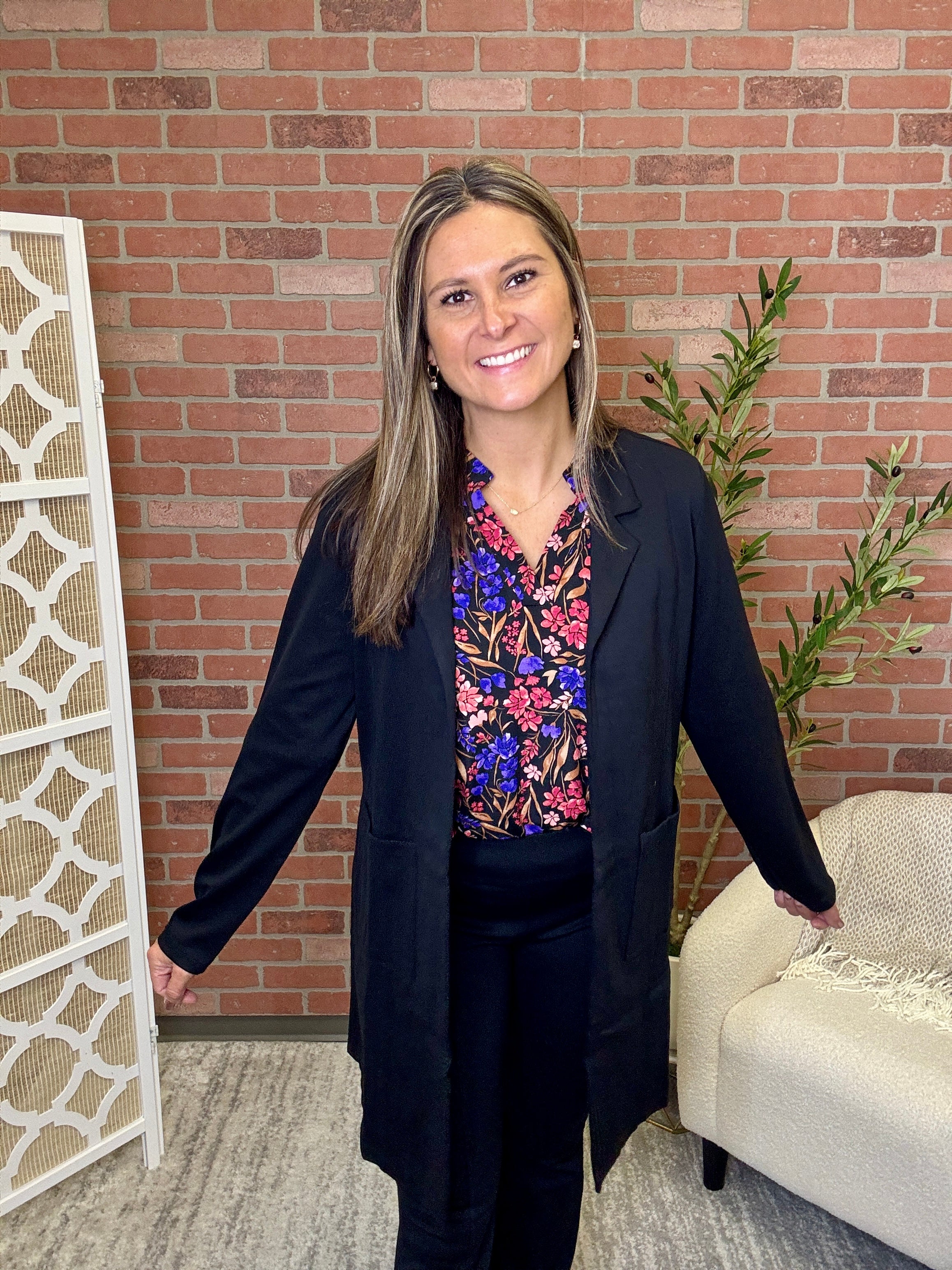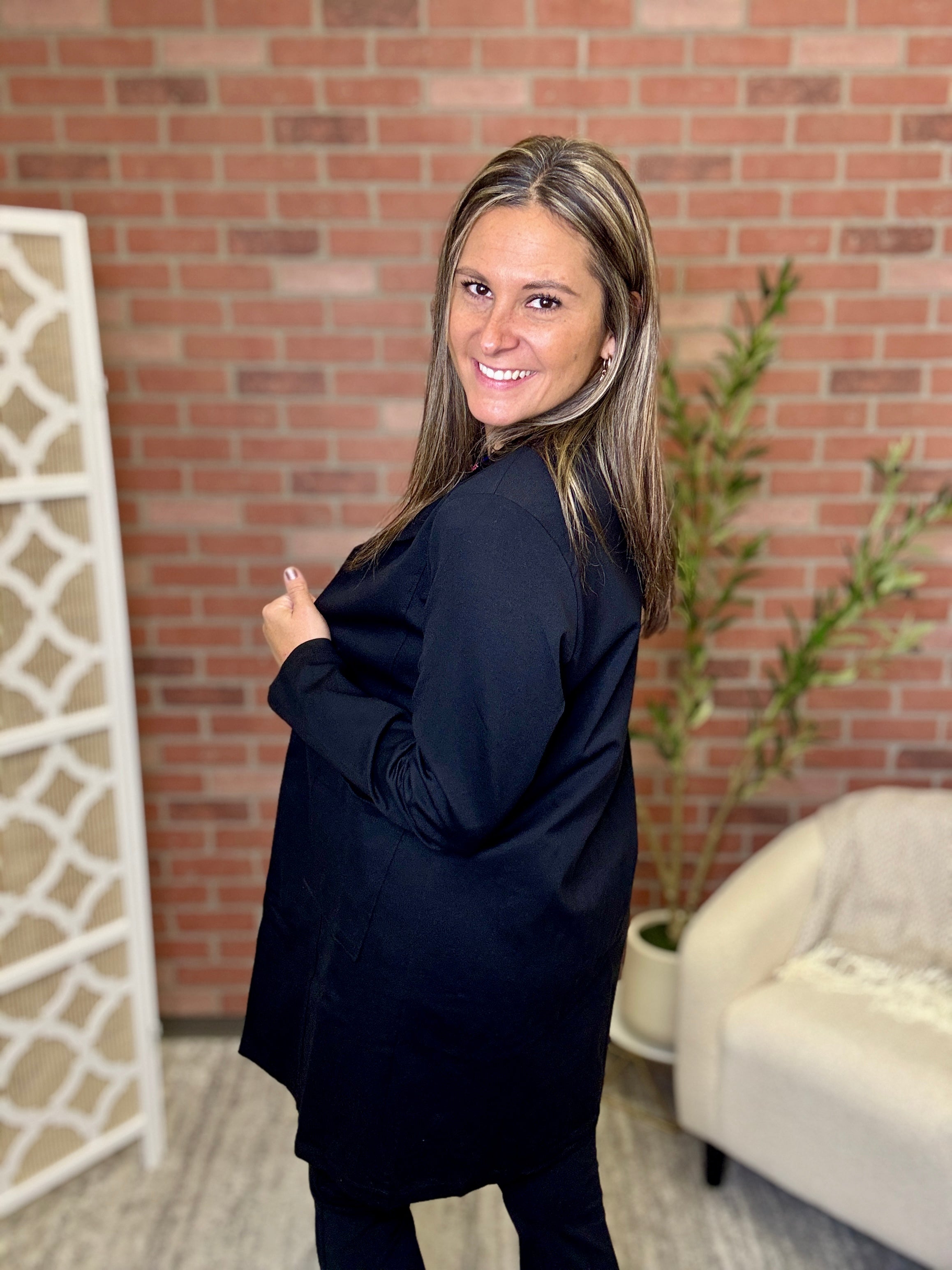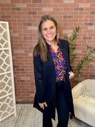 This refined double knit ponte midi jacket delivers timeless elegance with structured sophistication. The premium fabric drapes beautifully, making it an essential layering piece for polished, versatile styling.