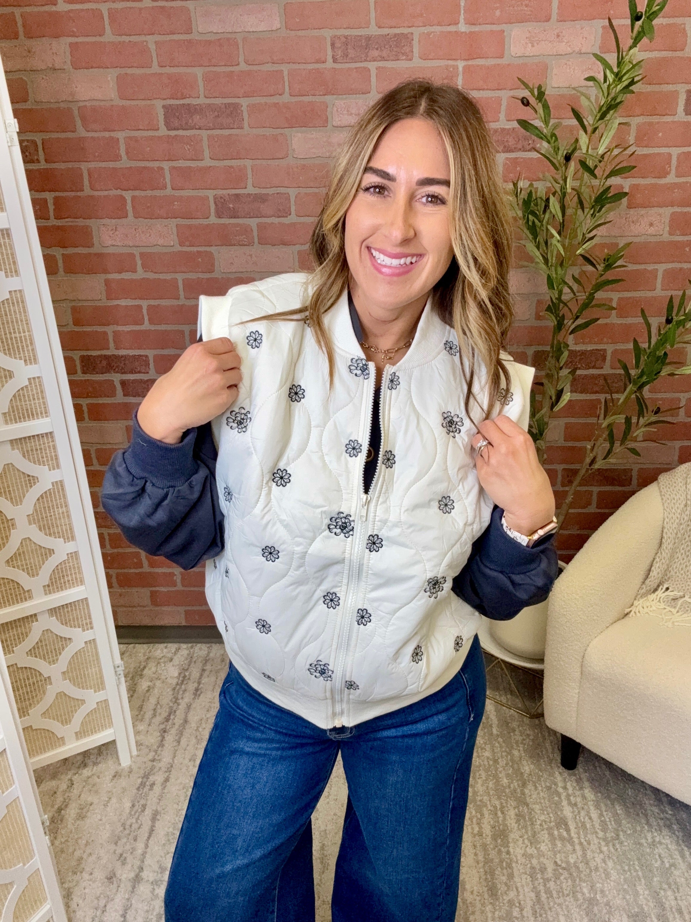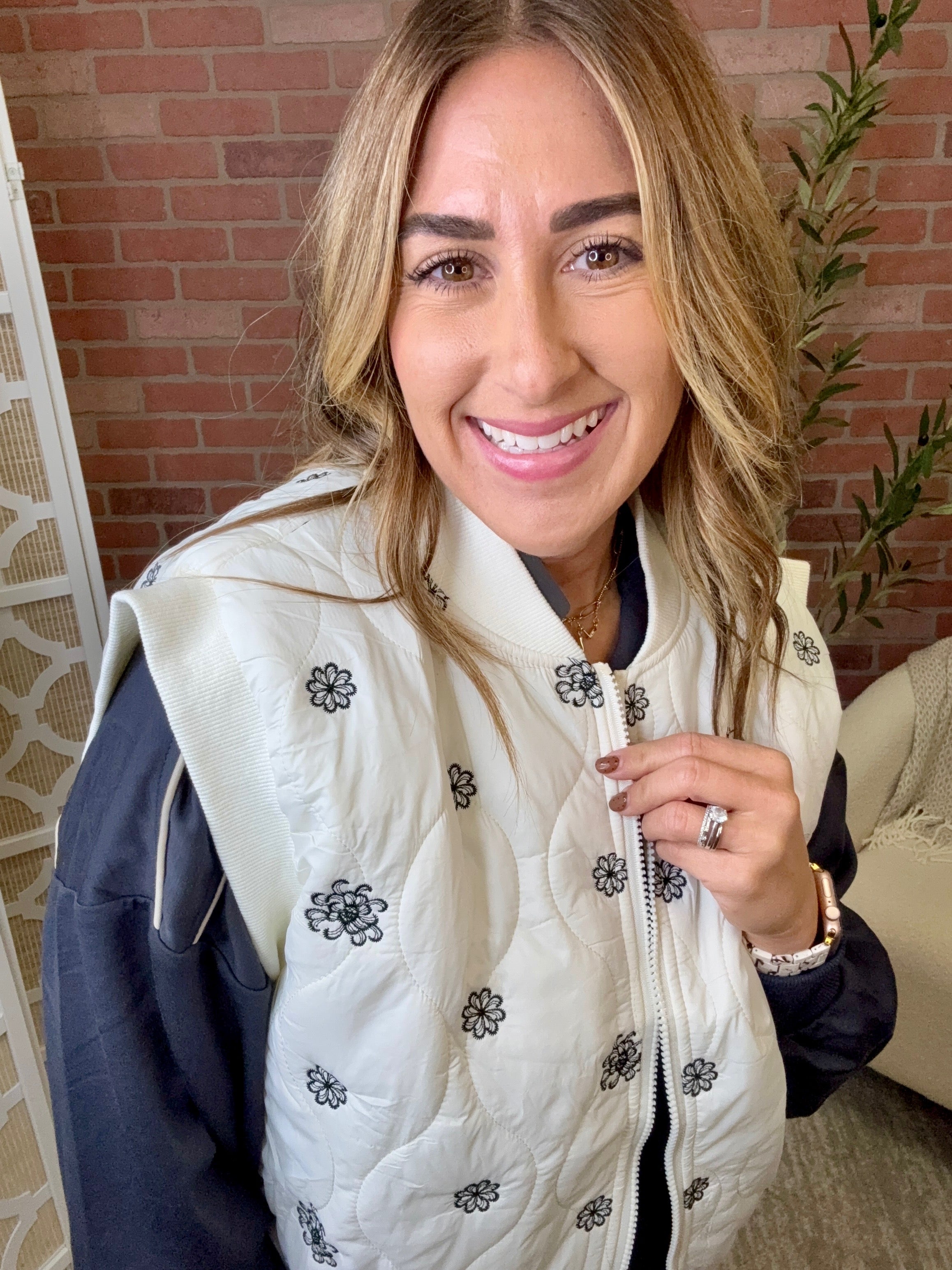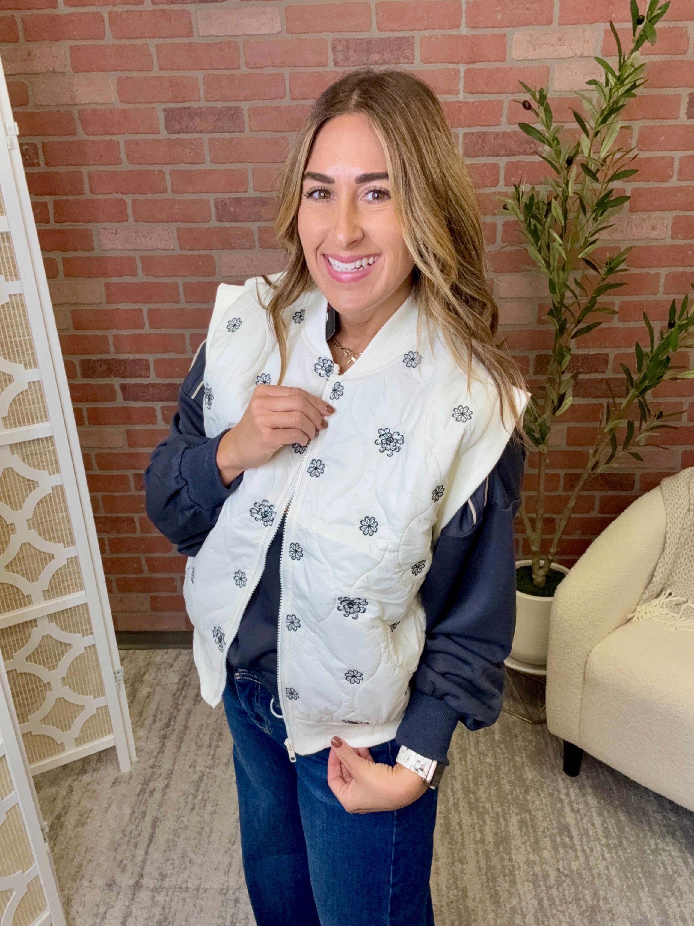 Layer up with personality in this quilted floral puffer vest! Featuring a charming botanical print that brings garden-fresh style to any outfit, this lightweight layer keeps you cozy without the bulk. Perfect for crisp days when you want just enough warmth with maximum flair. Slip it on over your favorite tee or sweater for an instant style upgrade that works with everything in your closet.