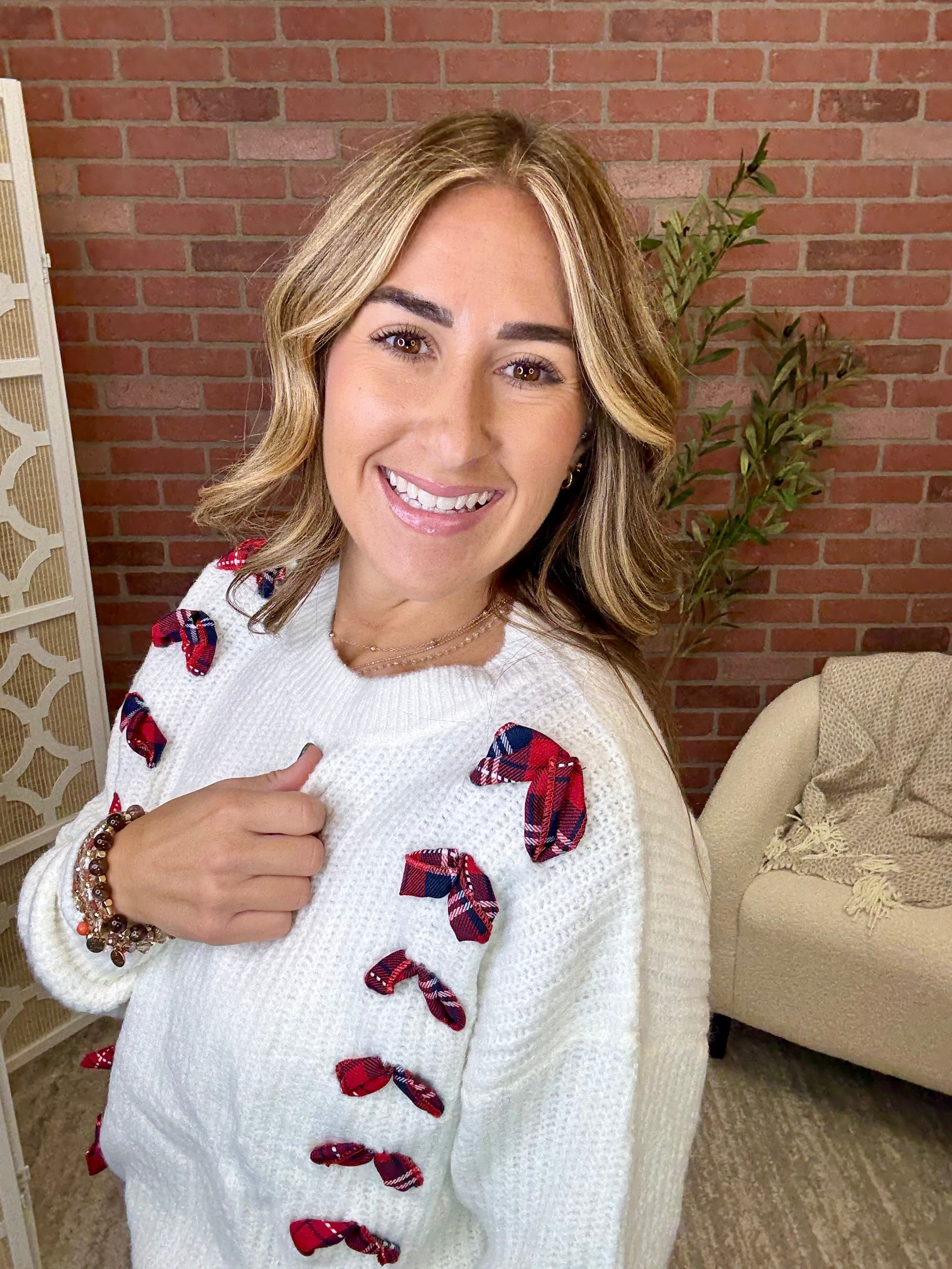Bring a playful twist to your cozy wardrobe with the Plaid Bow Accent Sweater. Featuring a charming plaid bow detail, this sweater adds a fun pop of personality to classic knitwear. Perfect for casual days and cozy nights, it keeps you snug while letting your style shine with a hint of whimsy.