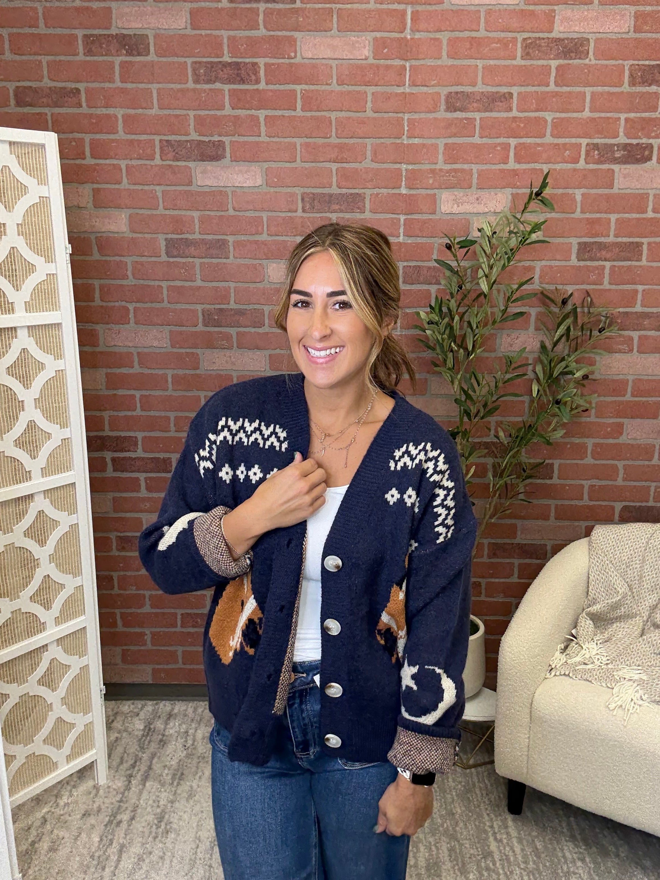 Make a bold style statement with the Horse Intarsia Cardigan. This daring piece features a striking horse design that captures attention while offering exceptional comfort. Perfect for those who want to blend trendsetting fashion with cozy wear, it elevates any outfit with unique flair.
