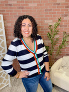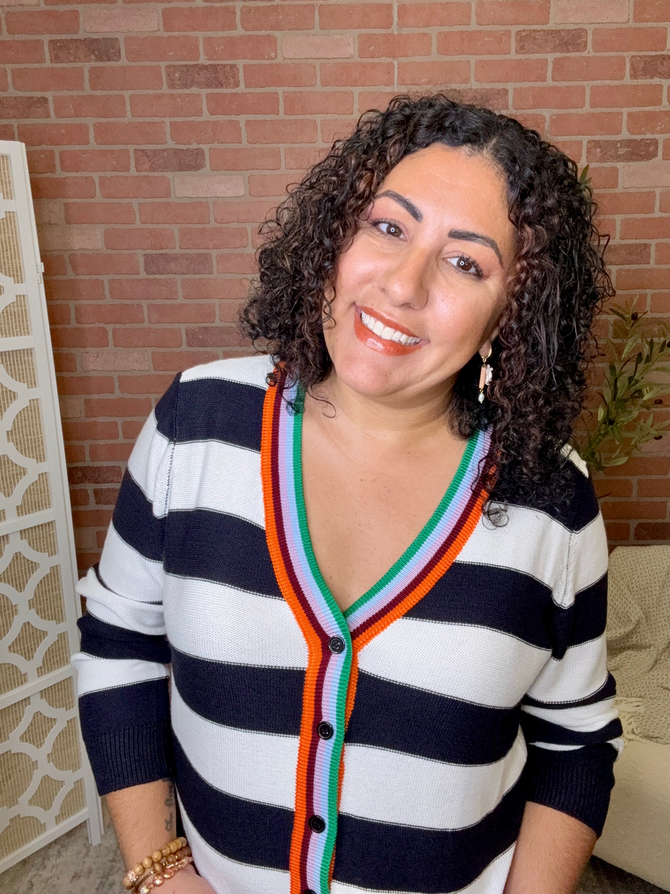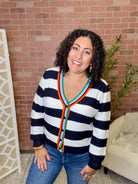 Button Bold Stripe Cardigan