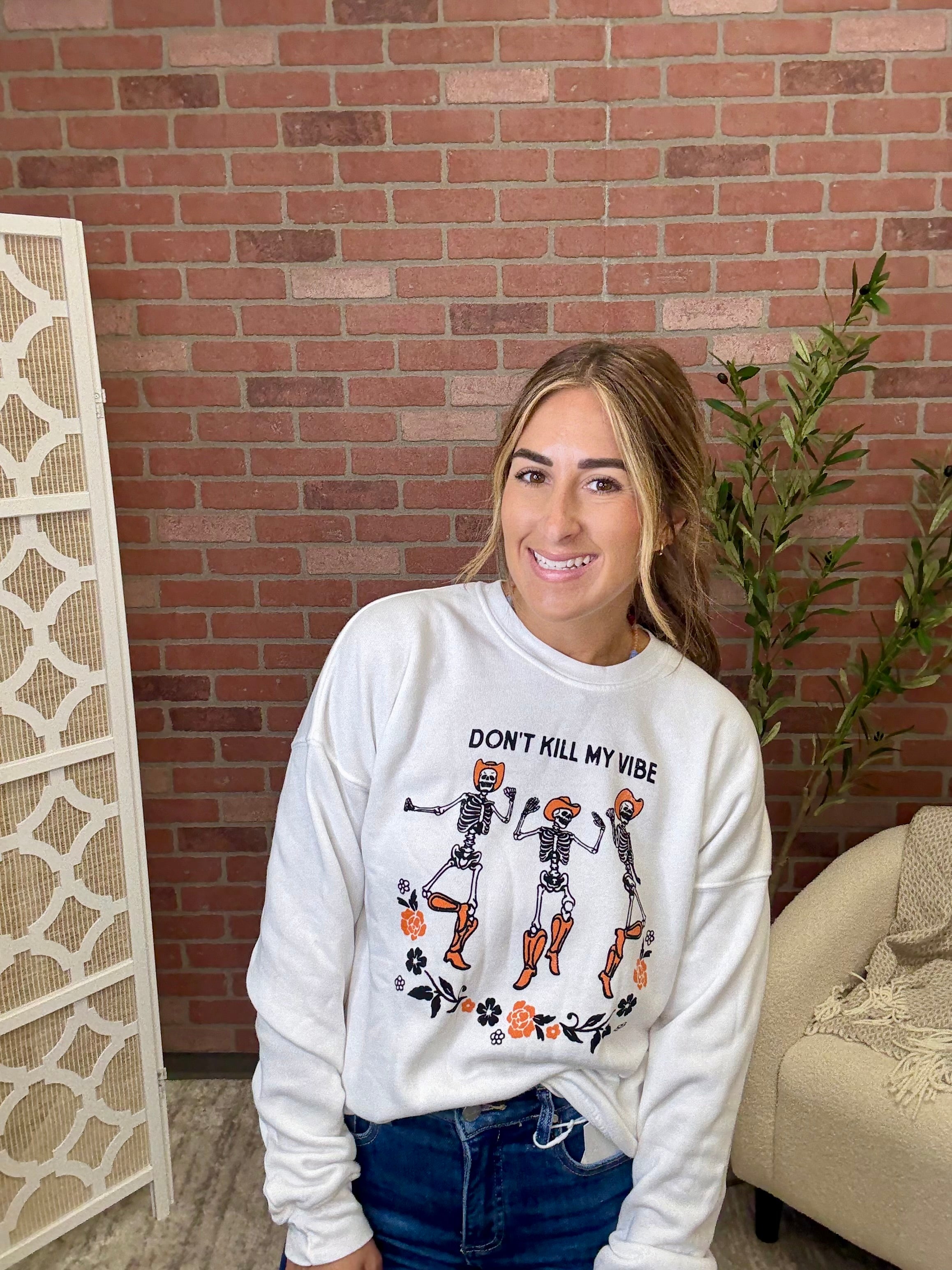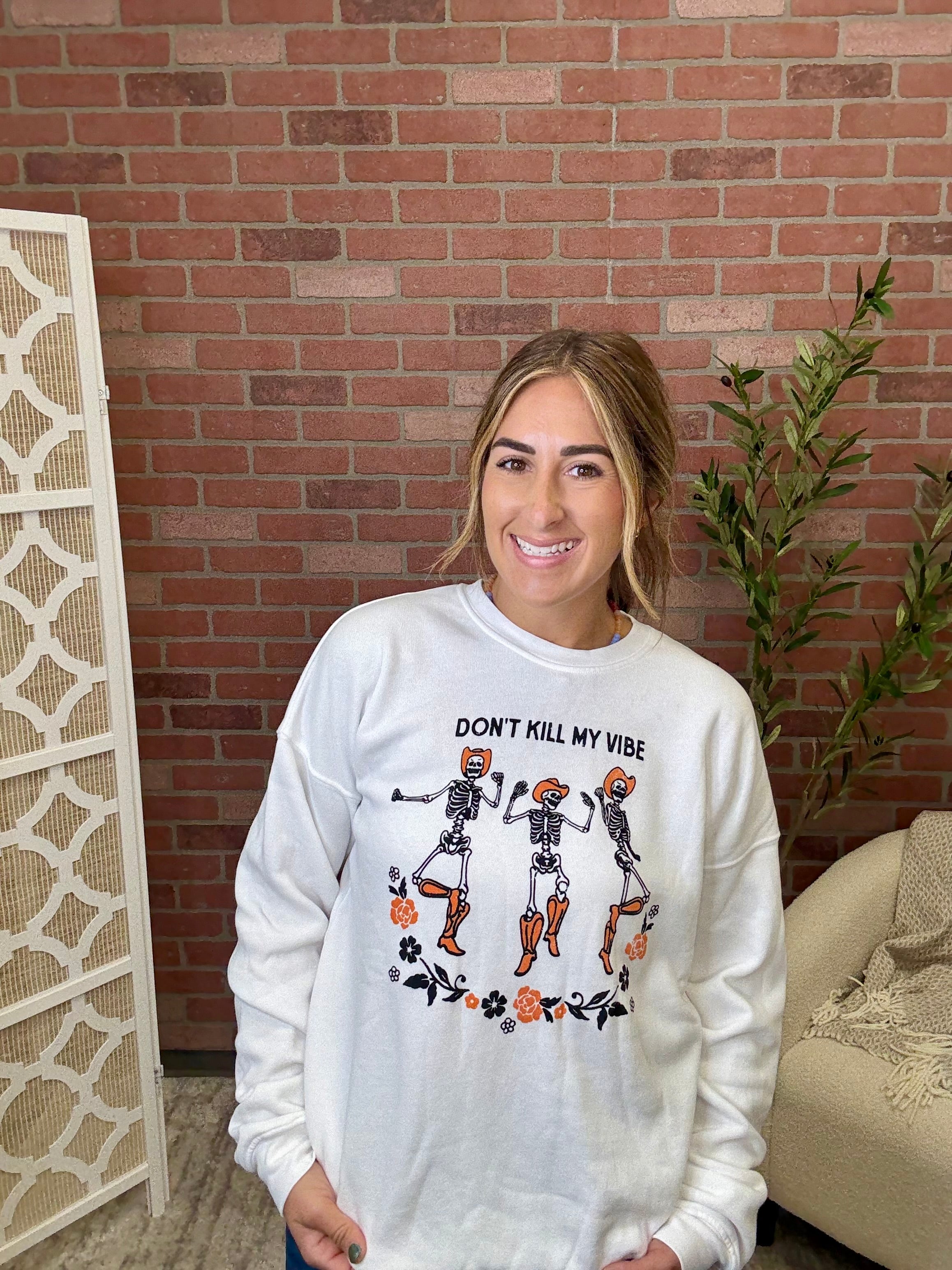 Embrace your wild side with this daring "Don't Kill My Vibe" design featuring a spooky cowboy skeleton. Perfect for those who stand fearless in the face of the eerie and unconventional, this piece channels bold attitude and rebellious spirit. Make a statement that’s as unstoppable as the untamed frontier.
