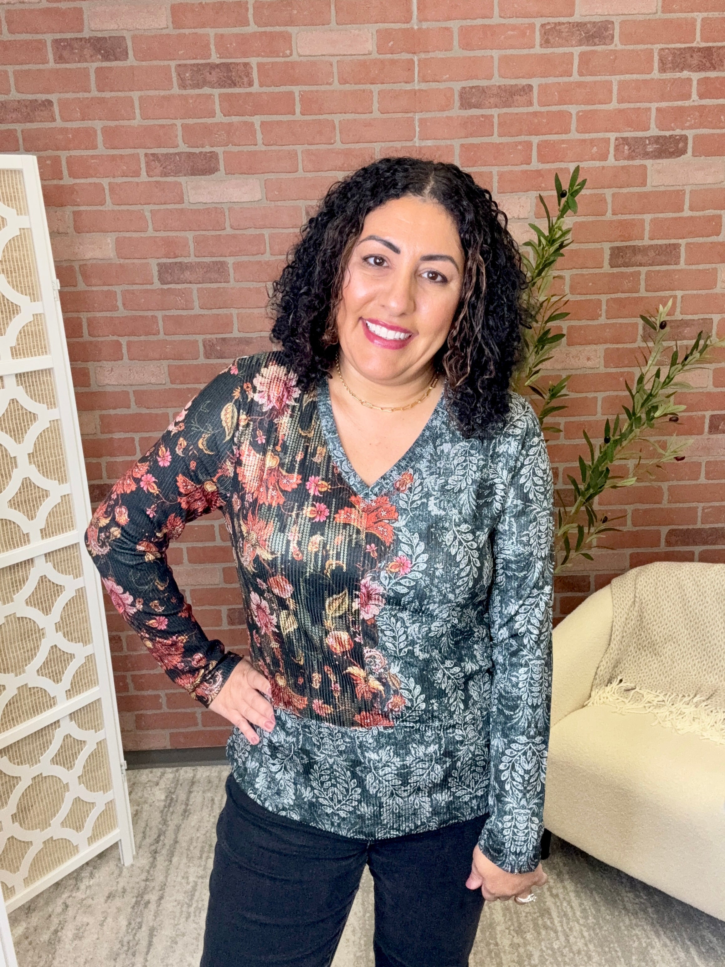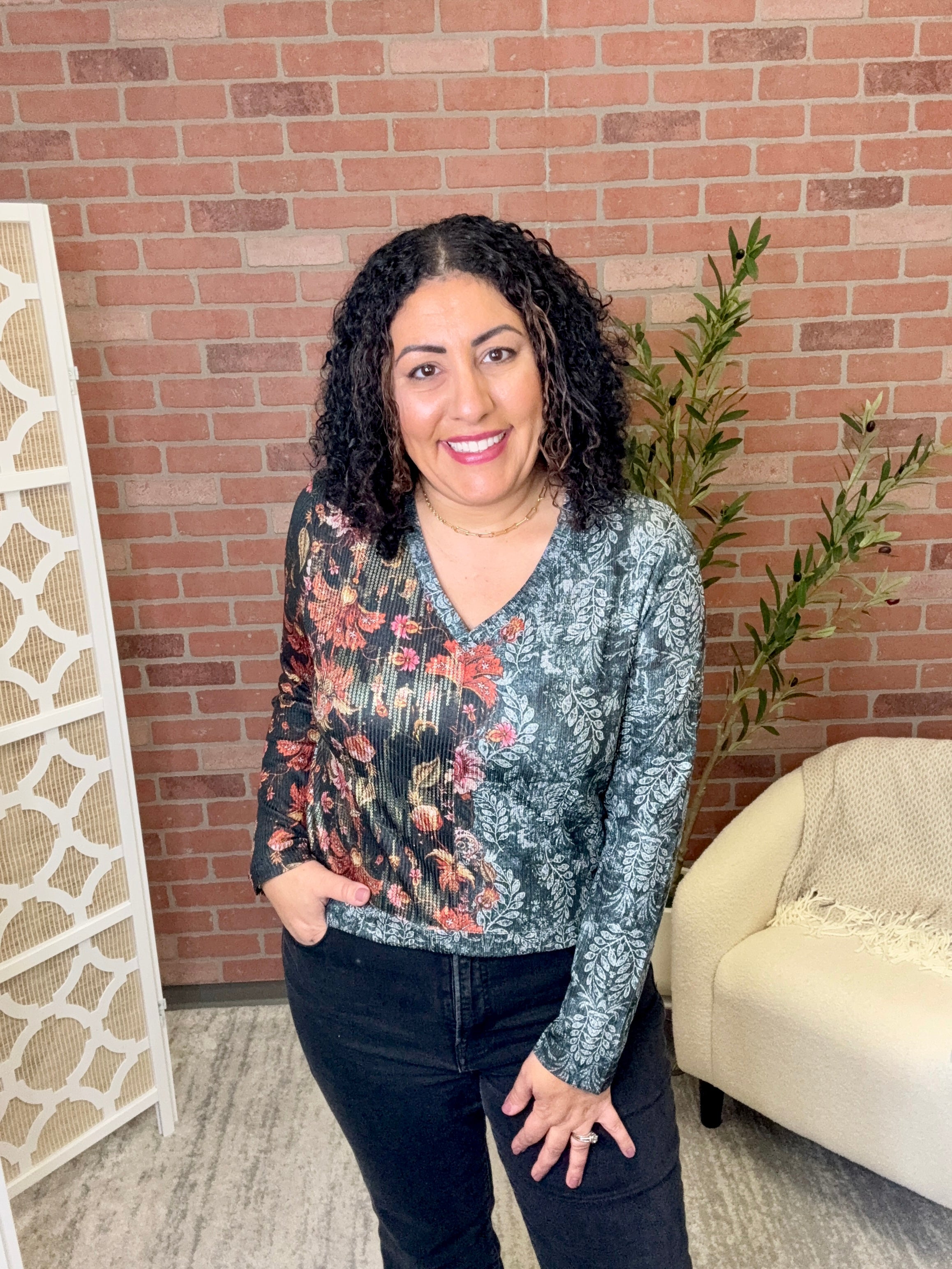 Embrace your free-spirited side in this charming two-tone boho top! Featuring a gorgeous multi-floral print that blends effortlessly across contrasting hues, the relaxed V-neckline adds a touch of laid-back elegance. Perfect for layering or wearing solo, this versatile piece brings bohemian flair to any wardrobe. Whether you're heading to brunch or a weekend getaway, this top delivers comfort and style in one delightful package.
