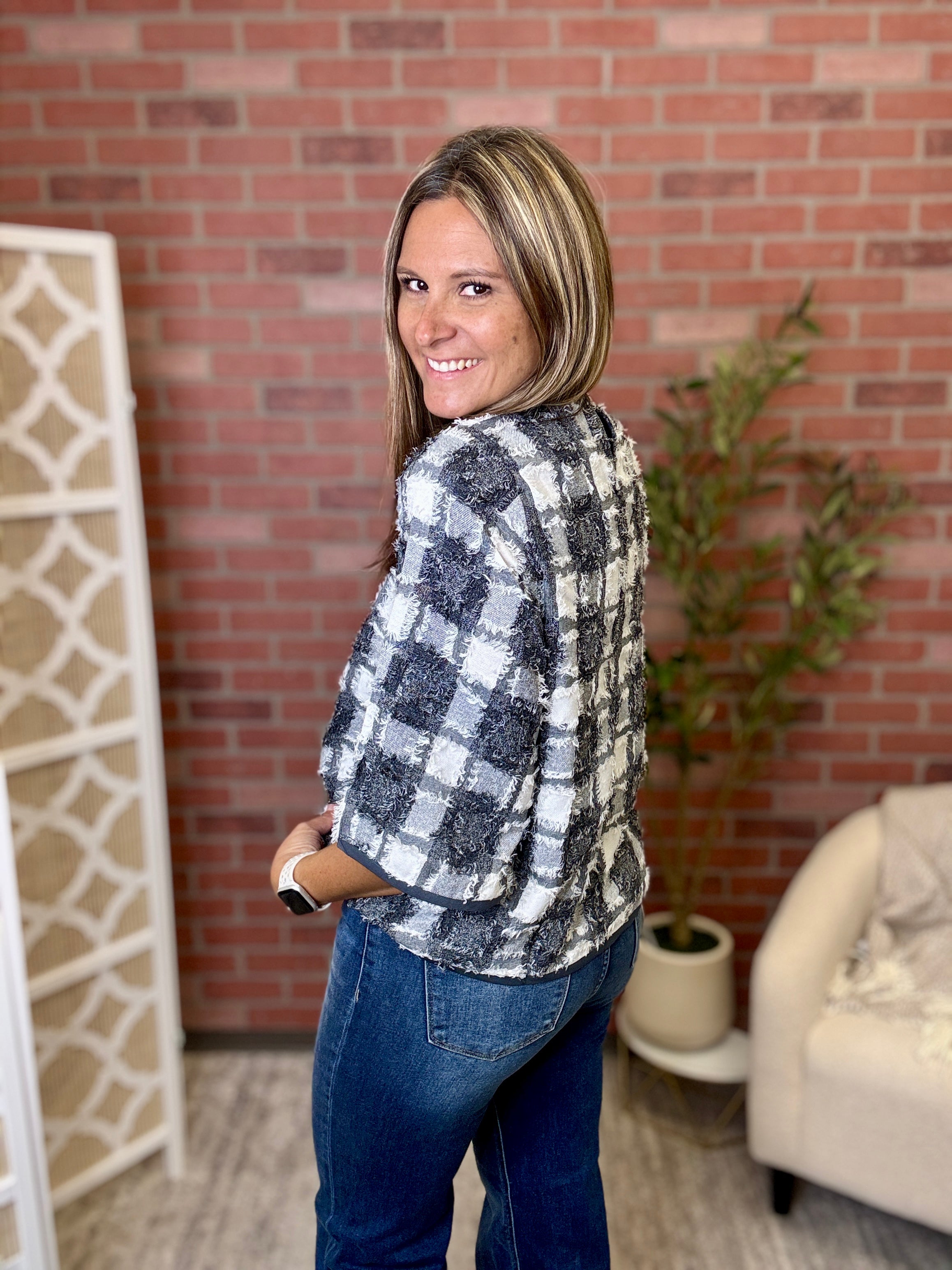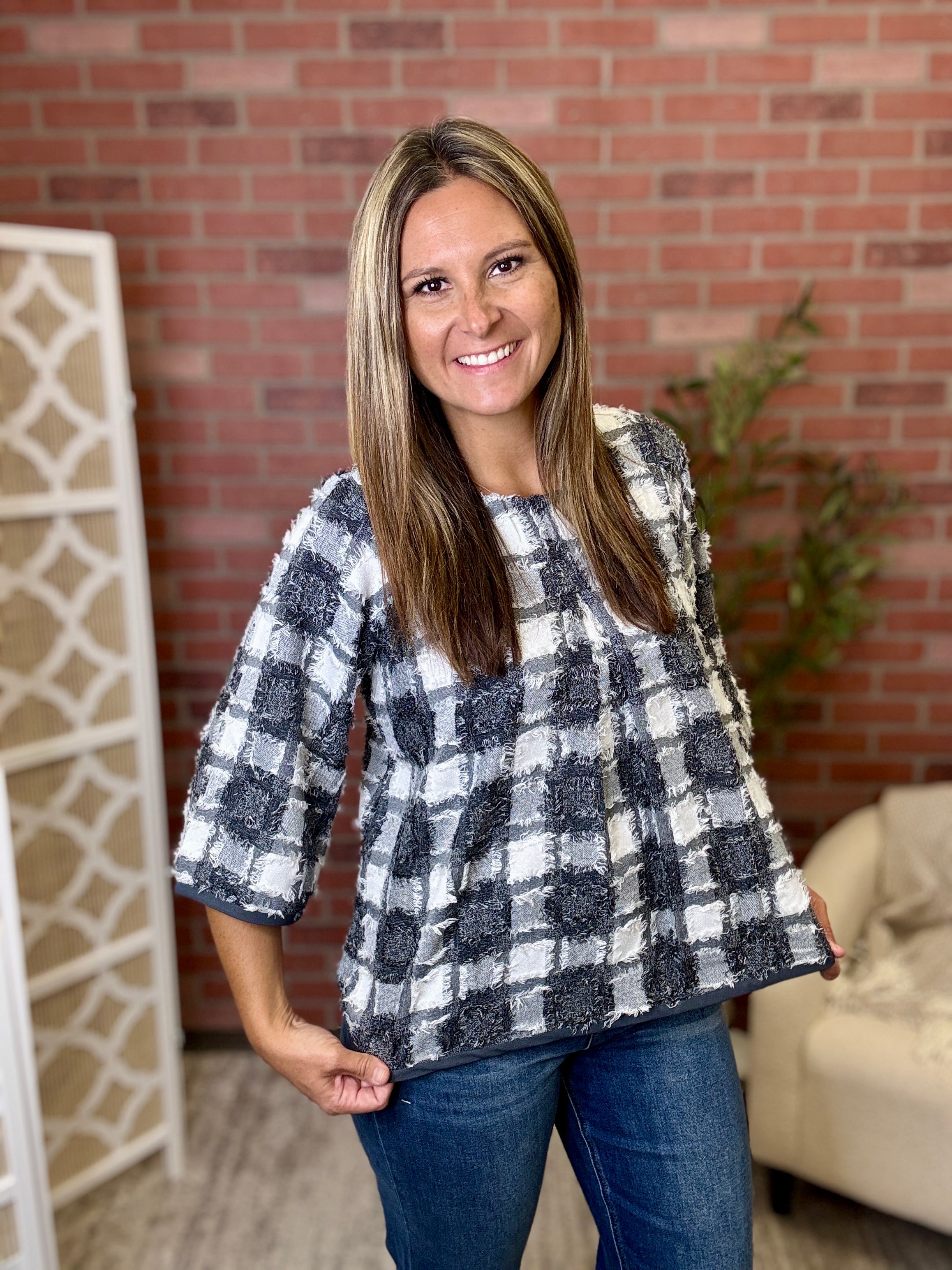 Make a bold statement with the Frayed Texture Check Top. Its edgy, frayed detailing combined with a striking check pattern challenges the ordinary and commands attention. Perfect for those who dare to stand out, this top adds fearless style to any outfit.