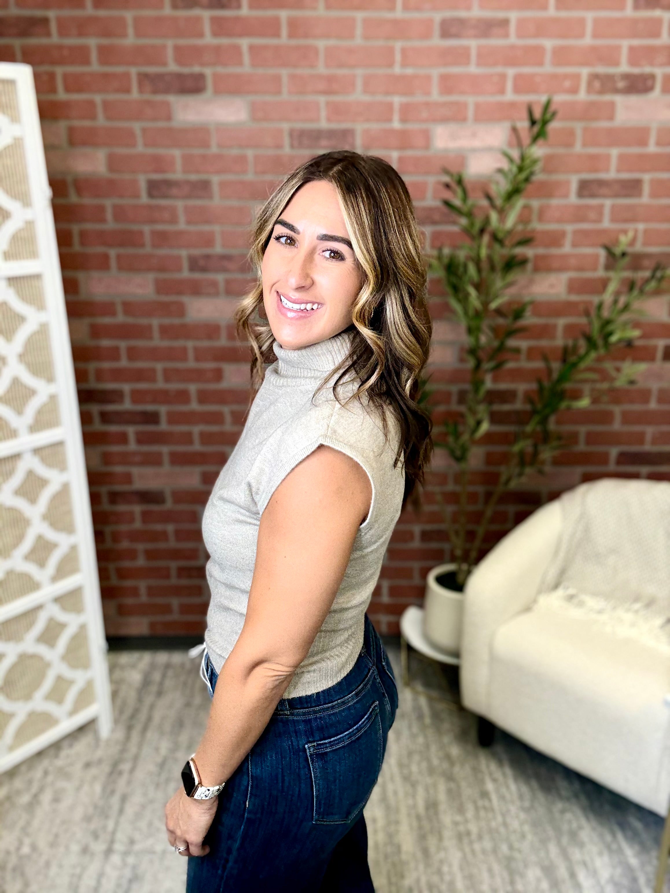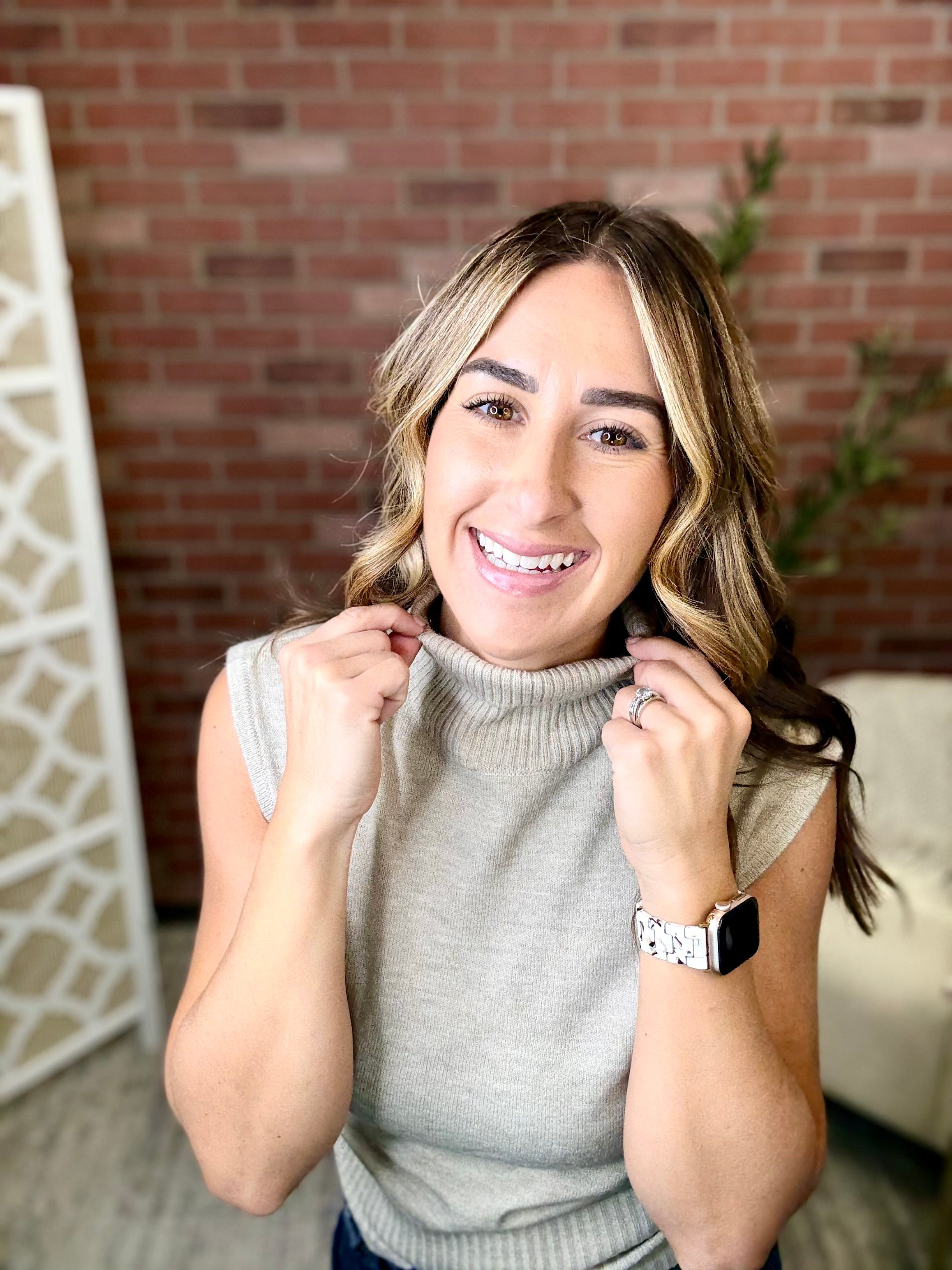 Layer up with this sleek high neck sleeveless knit—the perfect playful piece to mix and match with everything in your closet. Its mock neck keeps things cozy while the sleeveless cut lets you show off your favorite long-sleeve tees underneath. Whether you're going for effortless chic or casual cool, this versatile knit is your new go-to for creating endless outfit combinations. Simple, stylish, and oh-so-easy to love.
