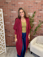 Wrap yourself in effortless style with this cozy knit maxi duster. Perfect for layering over your favorite outfits, this piece brings comfort and sophistication to any look. The relaxed fit and soft fabric make it ideal for lounging at home or running errands around town. Throw it on, feel fabulous, and let this wardrobe staple do all the heavy lifting. Your go-to for that "just right" vibe every single time.