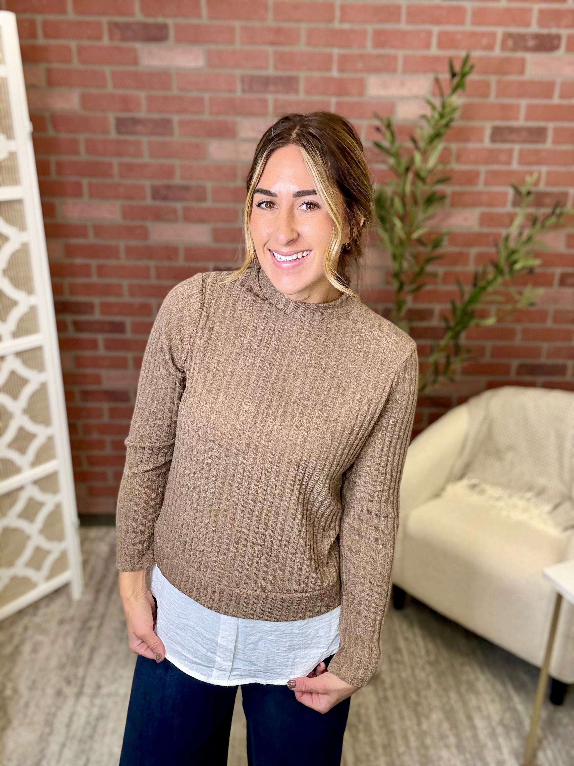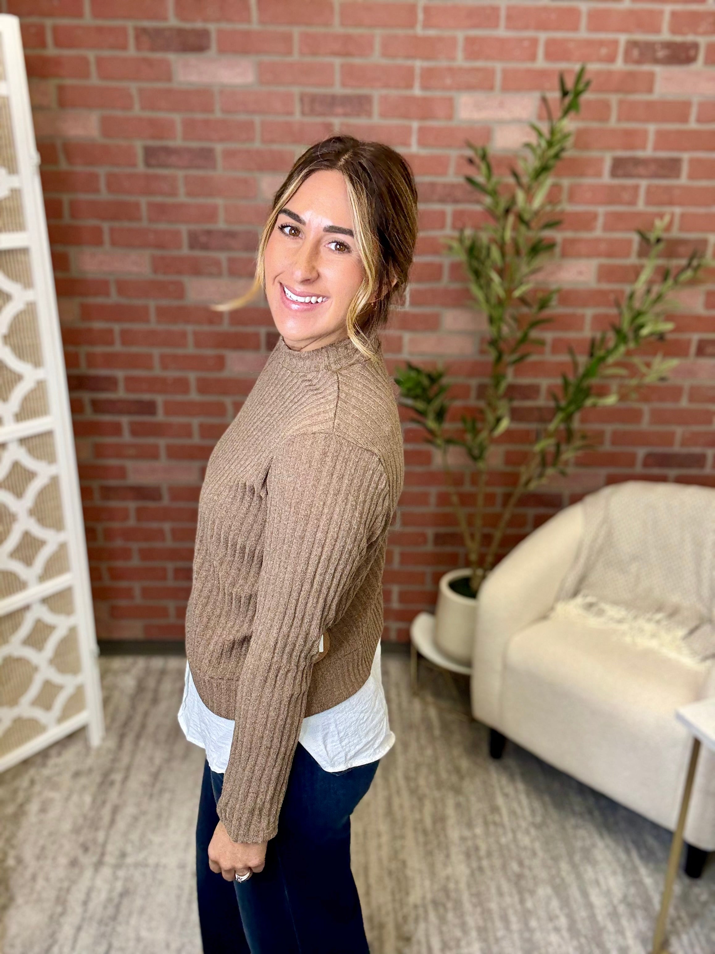 Layer up with personality in this Mixed Media Mockneck, where cozy meets cool. Featuring a playful blend of textures and fabrics, this sweater keeps things interesting with its modern mockneck silhouette. Perfect for those who refuse to blend in, it's your go-to piece for adding dimension to any outfit. Comfortable enough for all-day wear, stylish enough to turn heads.