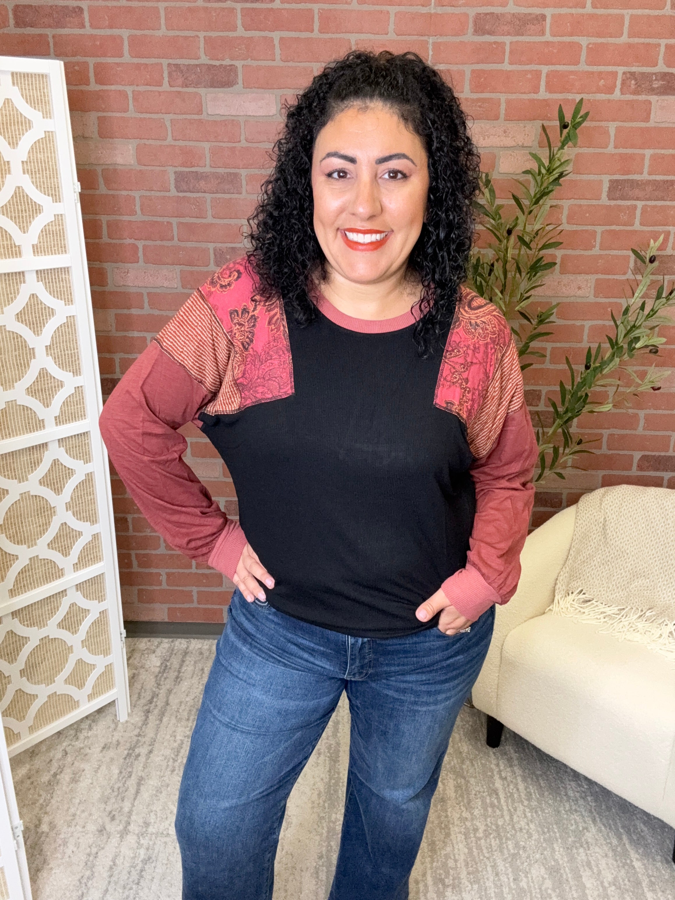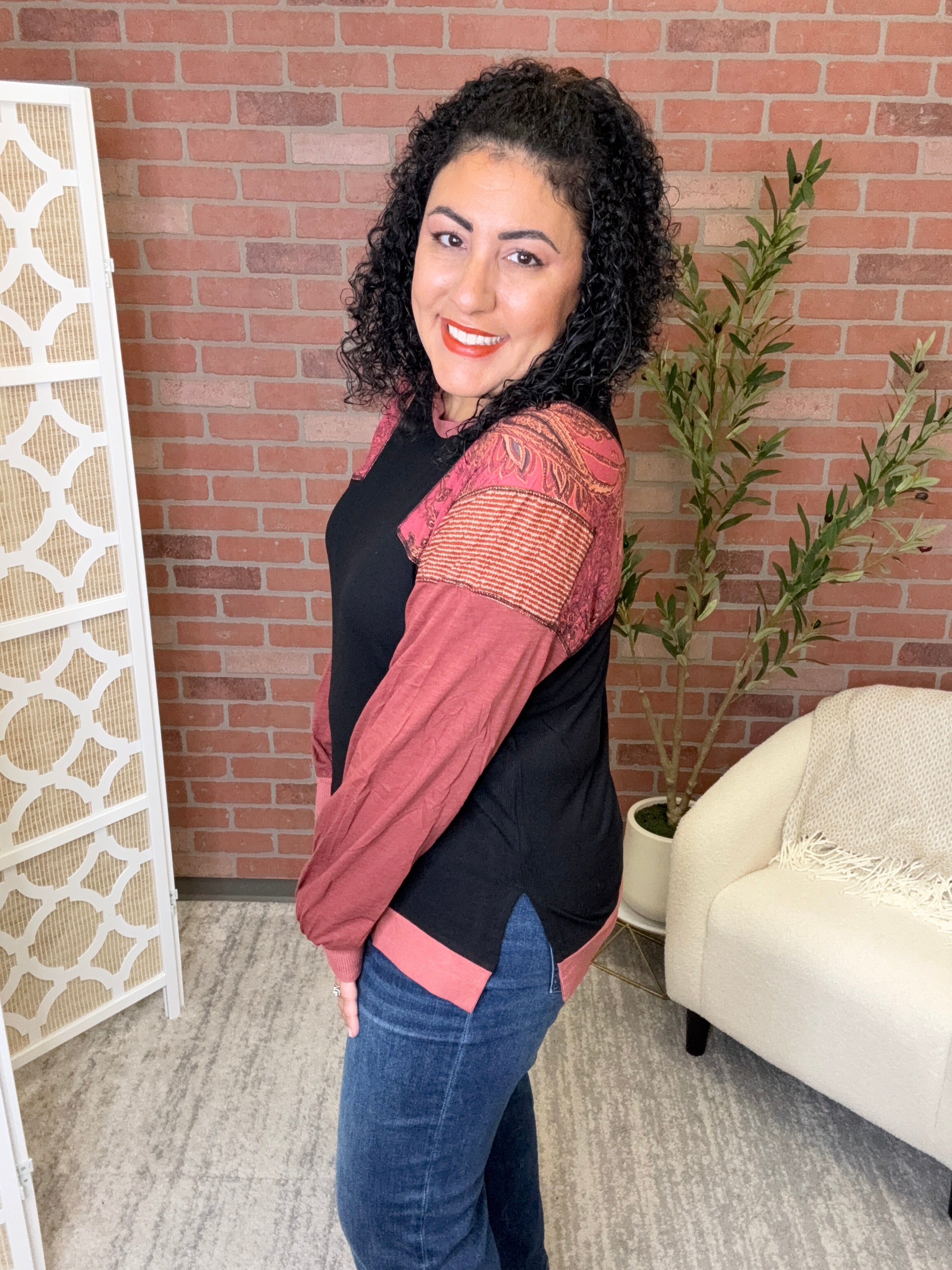 Stay cozy and stylish with the Mixed Media Pullover, your new go-to for any occasion. Its versatile design lets you mix and match like a pro, perfect for lounging, layering, or stepping out. Soft, comfy, and cool—this pullover turns everyday wear into a playful fashion statement.