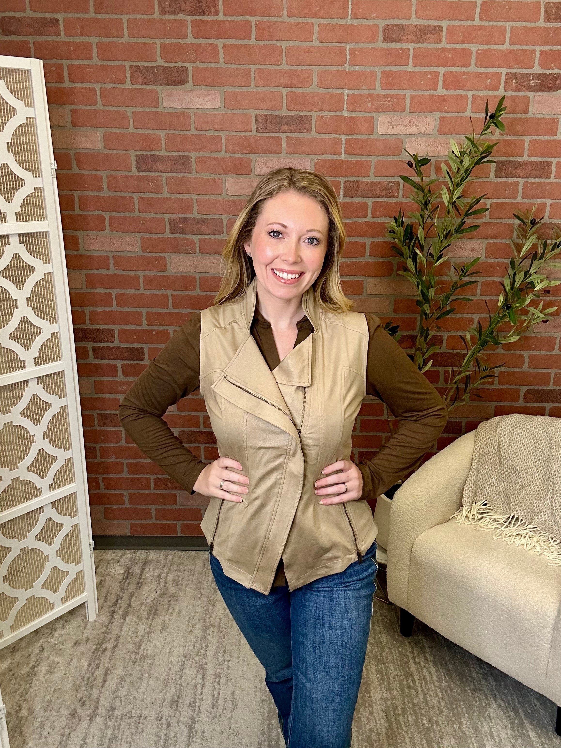 This MM Slinky Vest redefines edgy style with its sleek faux leather moto look and figure-hugging fit. Perfect for layering, it boosts your wardrobe with a bold, rebellious edge that pairs effortlessly with your favorite jeans or skirts. Stand out with every step in this daring, versatile piece.