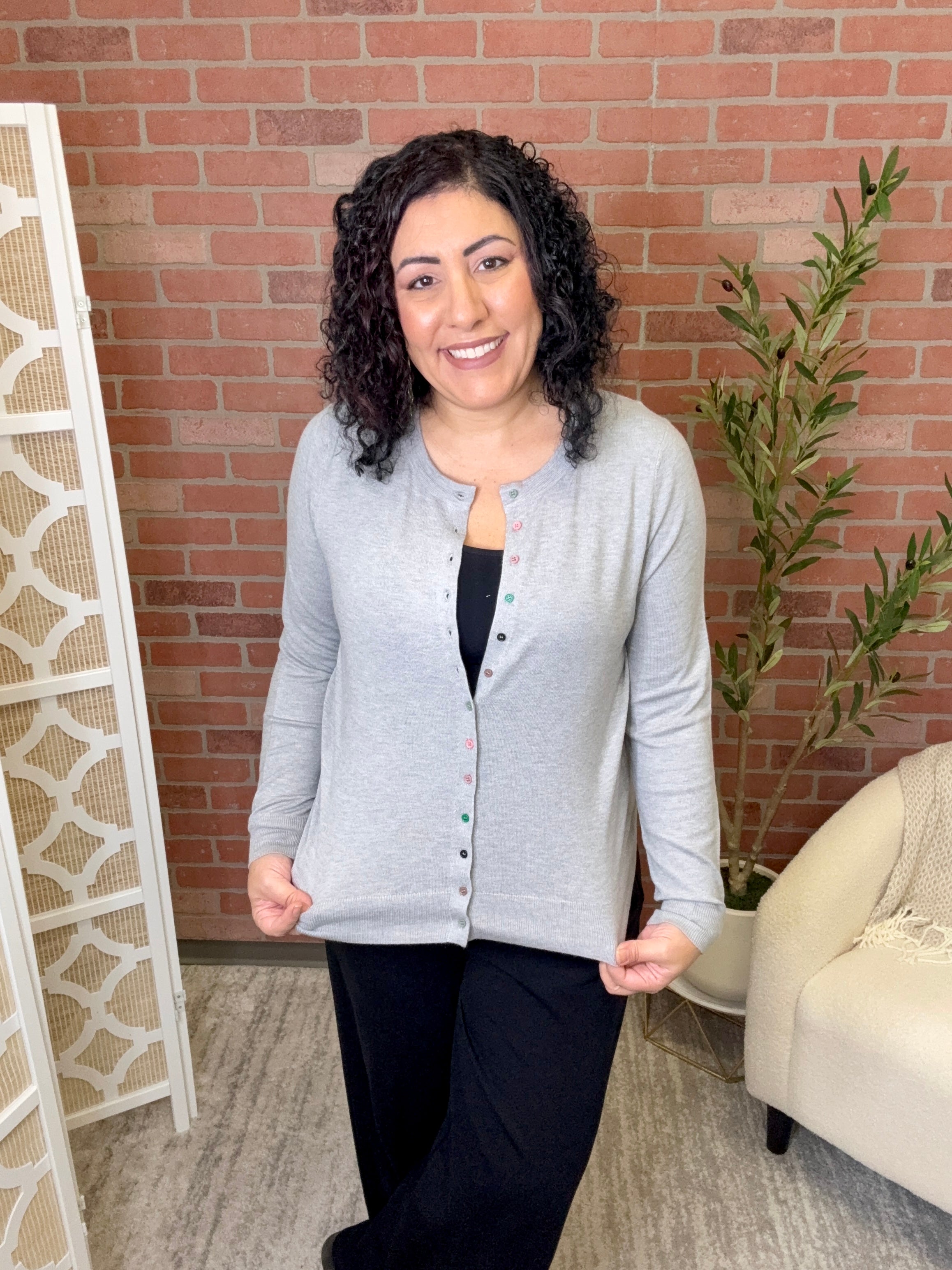 Layer up in style with this vibrant Multi Color Button Cardi! Featuring a playful mix of hues, this versatile piece transitions seamlessly from casual to chic. The classic button-front design makes it easy to dress up or down, while the soft fabric keeps you cozy all day long. Perfect for adding a pop of color to any outfit, this cardi is your new go-to for effortless style that brings joy to your wardrobe.