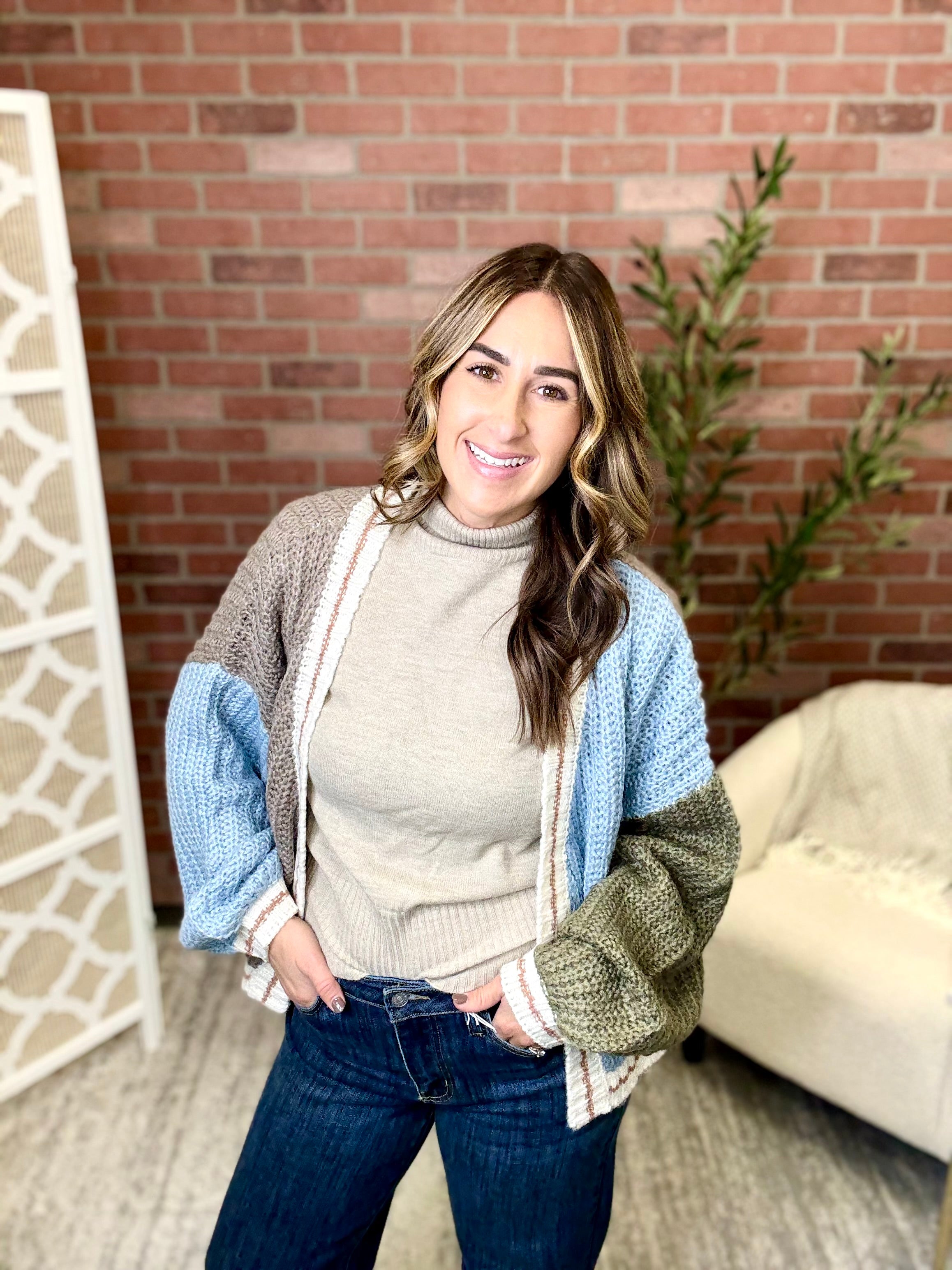 Throw on this oversized block cardigan and call it a day—comfort meets style with zero effort required. The relaxed fit drapes beautifully over everything in your closet, while the bold color blocking keeps things visually interesting. Perfect for layering over your favorite tee or dress, it's the kind of piece that makes getting dressed feel like a breeze. Cozy, effortless, and endlessly wearable.