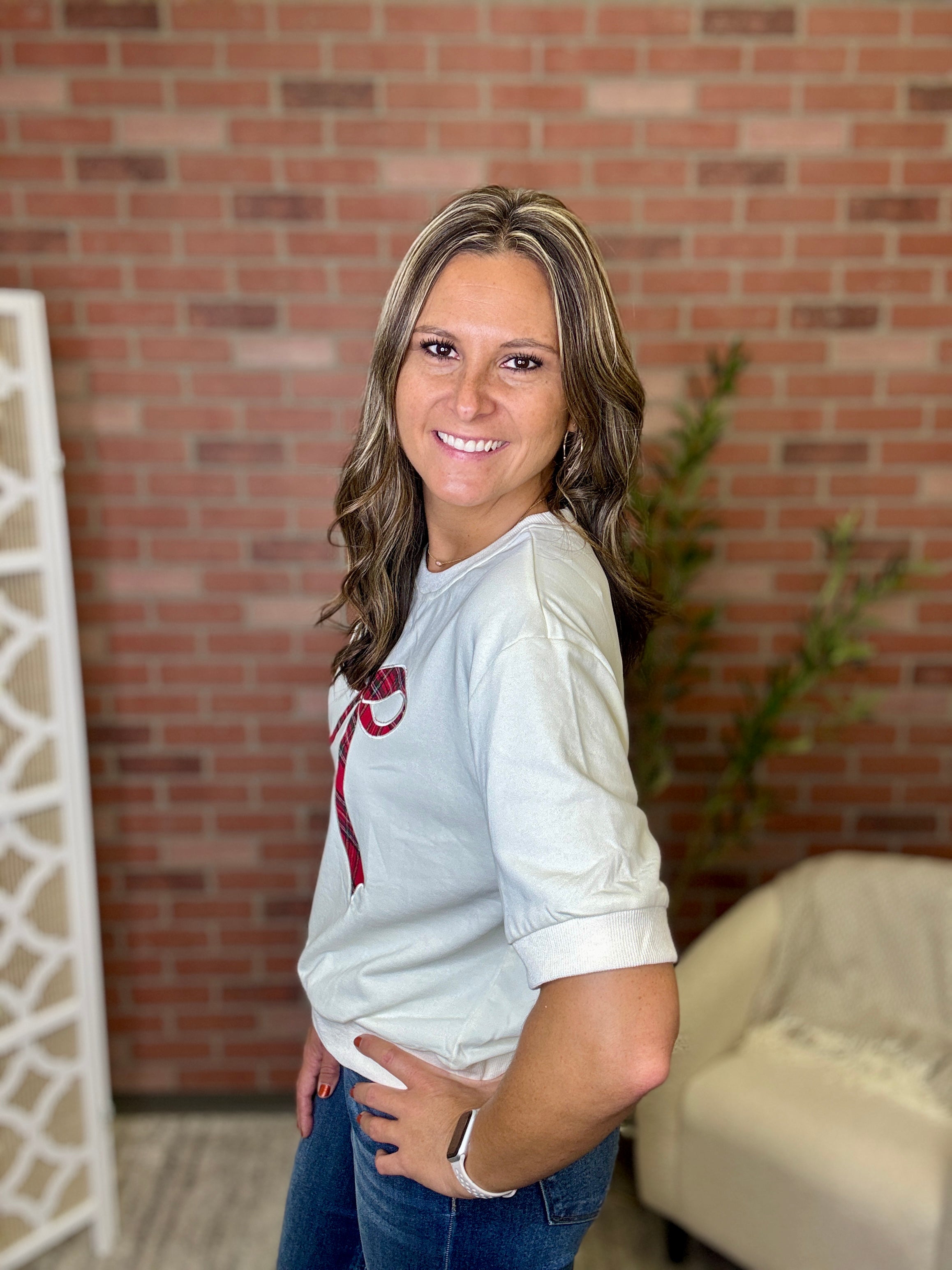 Add a dash of charm to your wardrobe with the Plaid Bow Knit. This soft, cozy knit features a playful bow detail and a cheerful plaid pattern that brightens up any outfit. Perfect for layering or lounging, it brings warmth and whimsy together for effortless style and comfort.