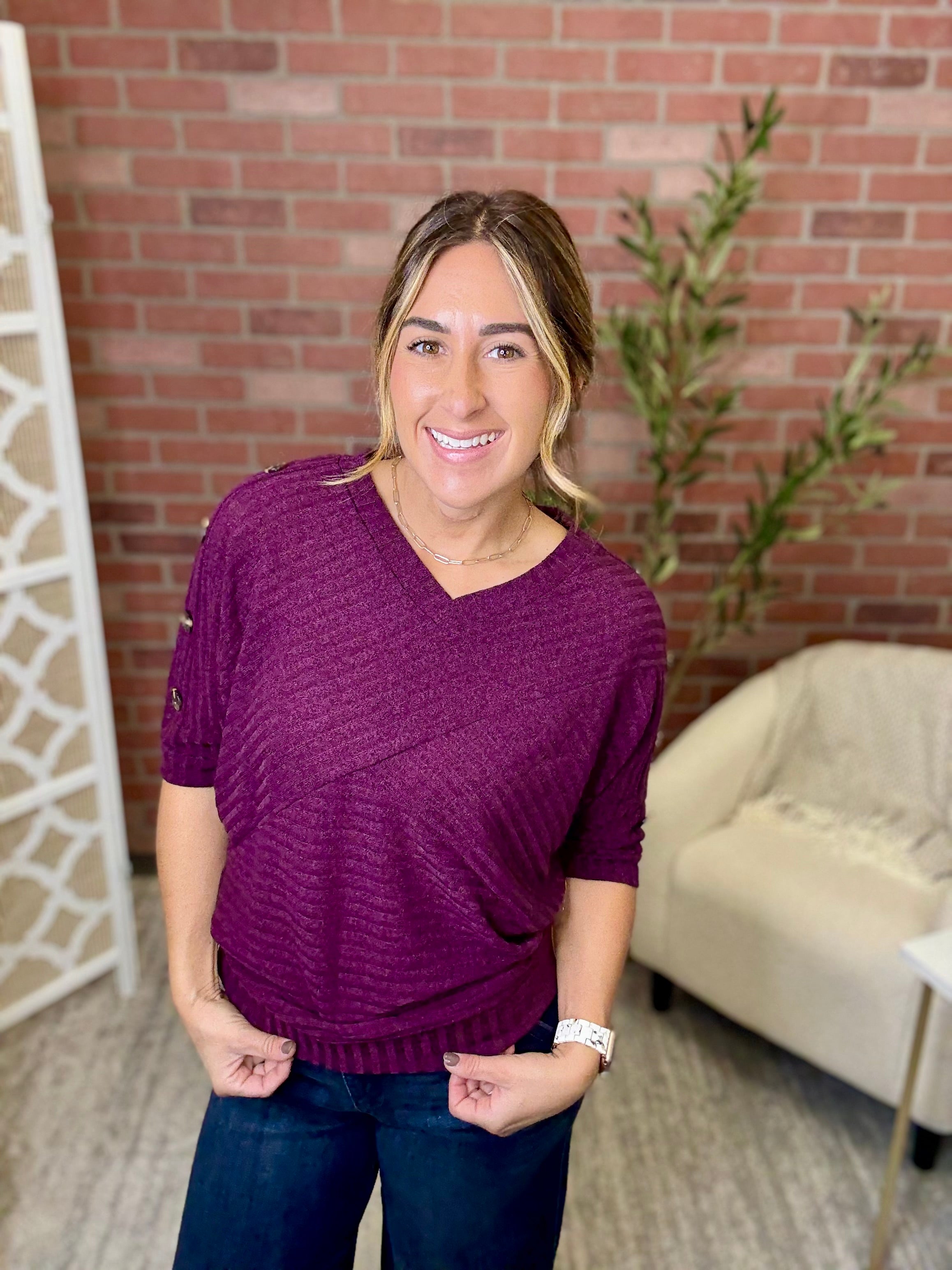 Elevate your sweater game with this charming ribbed button shoulder style! The classic V-neck flatters every frame, while the banded bottom keeps everything perfectly in place. Those adorable button details at the shoulders add just the right amount of personality—because who says cozy can't be cute? Layer it, dress it up, or wear it solo for effortless style that works as hard as you do.