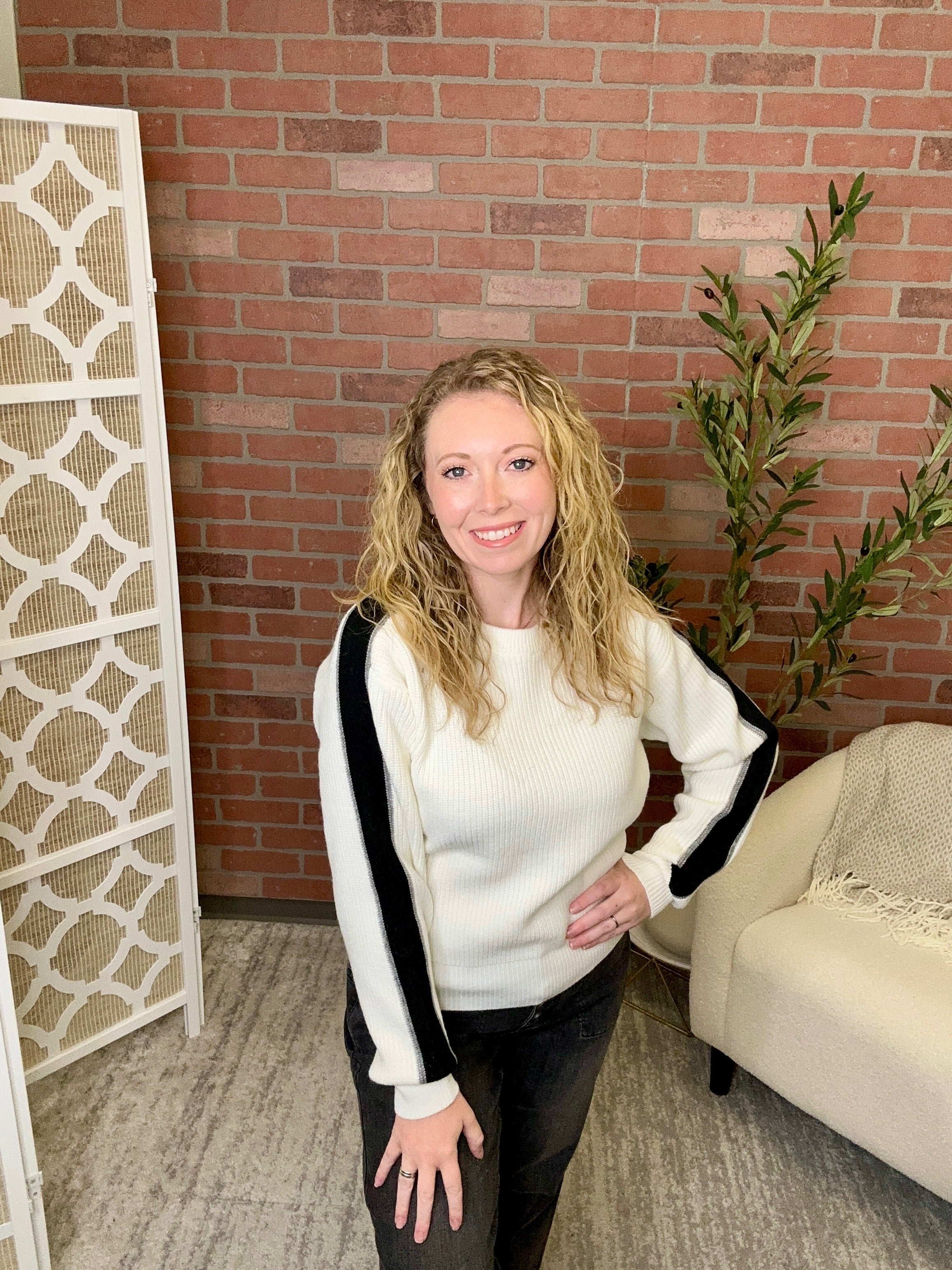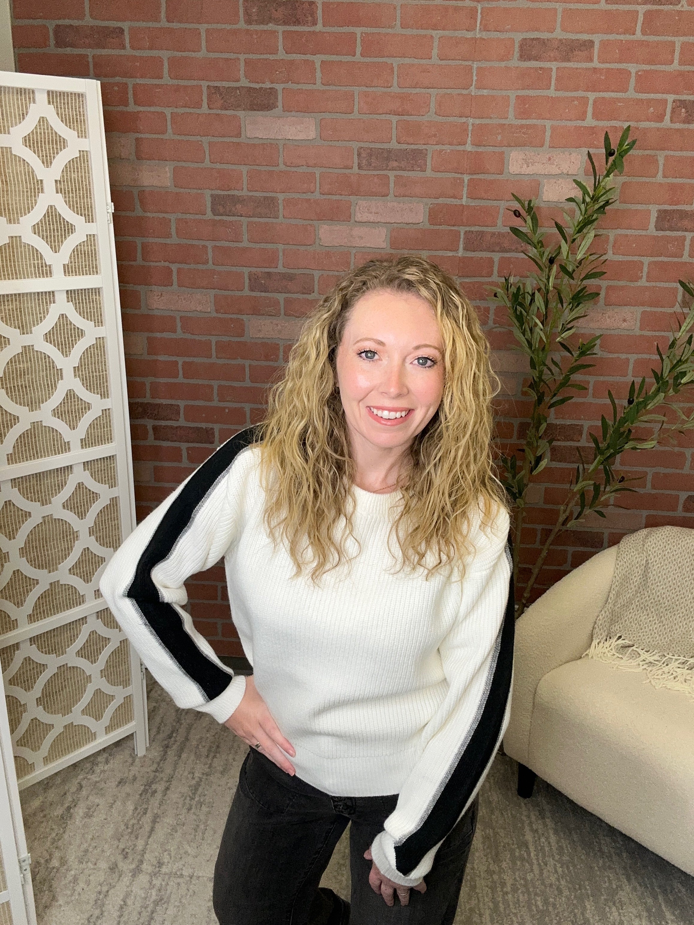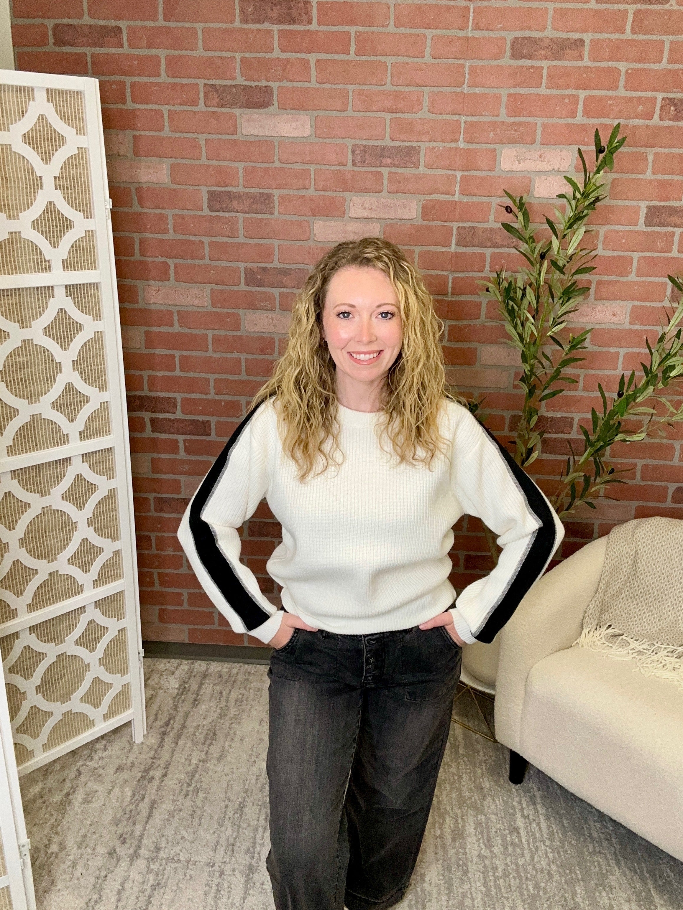 Add a twist of fun to your wardrobe with the Round Neck Stripe Sleeve top! Its classic round neckline pairs perfectly with playful striped sleeves, making every outfit pop with personality. Perfect for casual days when you want to keep it comfy and cute.
