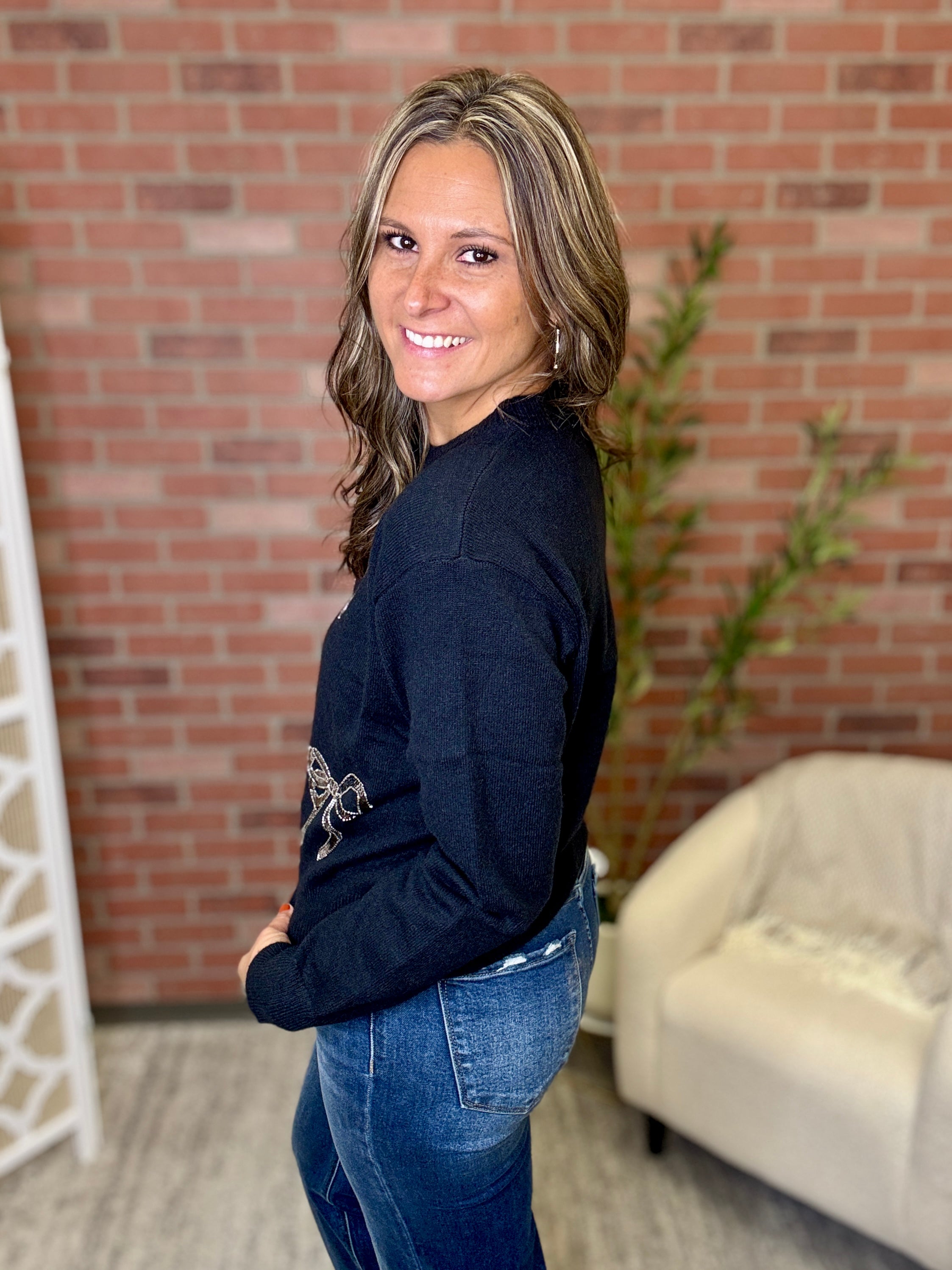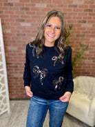 Add a dash of sparkle to your day with the Sequin Ribbon Sweater. Soft, cozy, and adorned with shimmering sequins, it turns everyday comfort into a festive statement. Perfect for brightening any occasion while keeping you snug and stylish.
