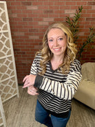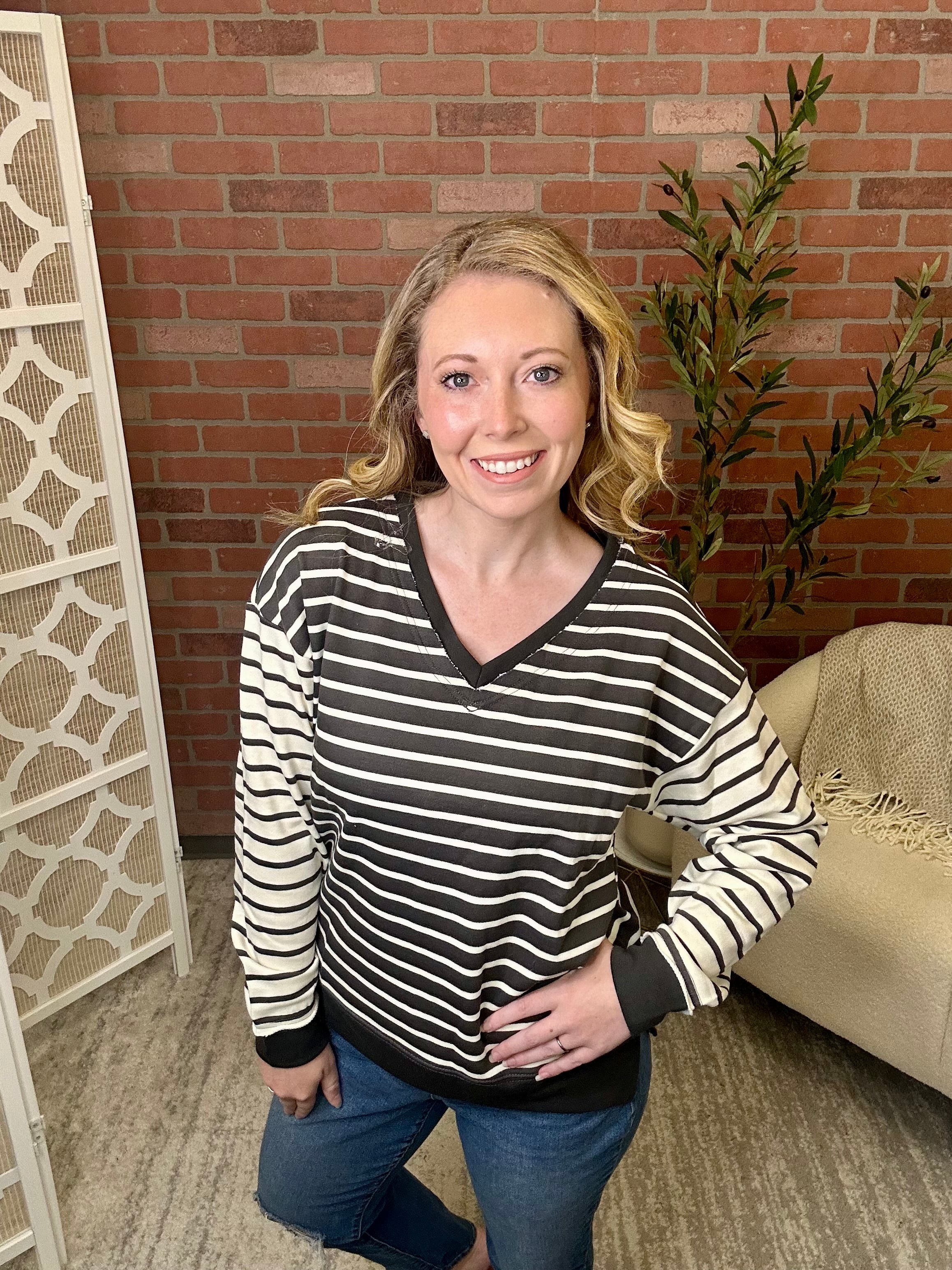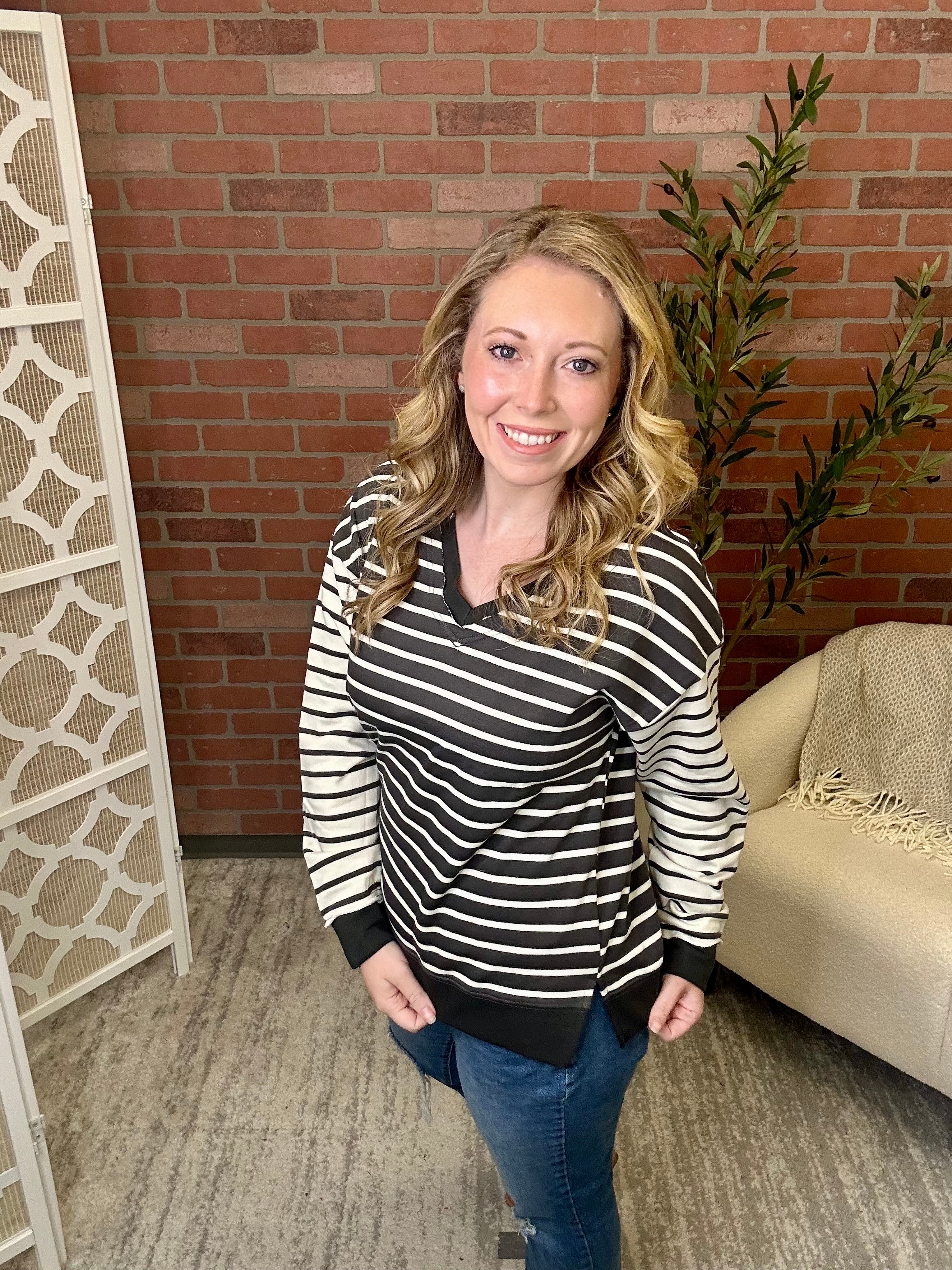 Make a bold statement with this Striped French Terry sweatshirt, designed to combine comfort and edge. Its soft, breathable fabric keeps you cozy while the striking stripes add a daring flair to any casual look. Perfect for those who want effortless style with a confident twist.