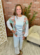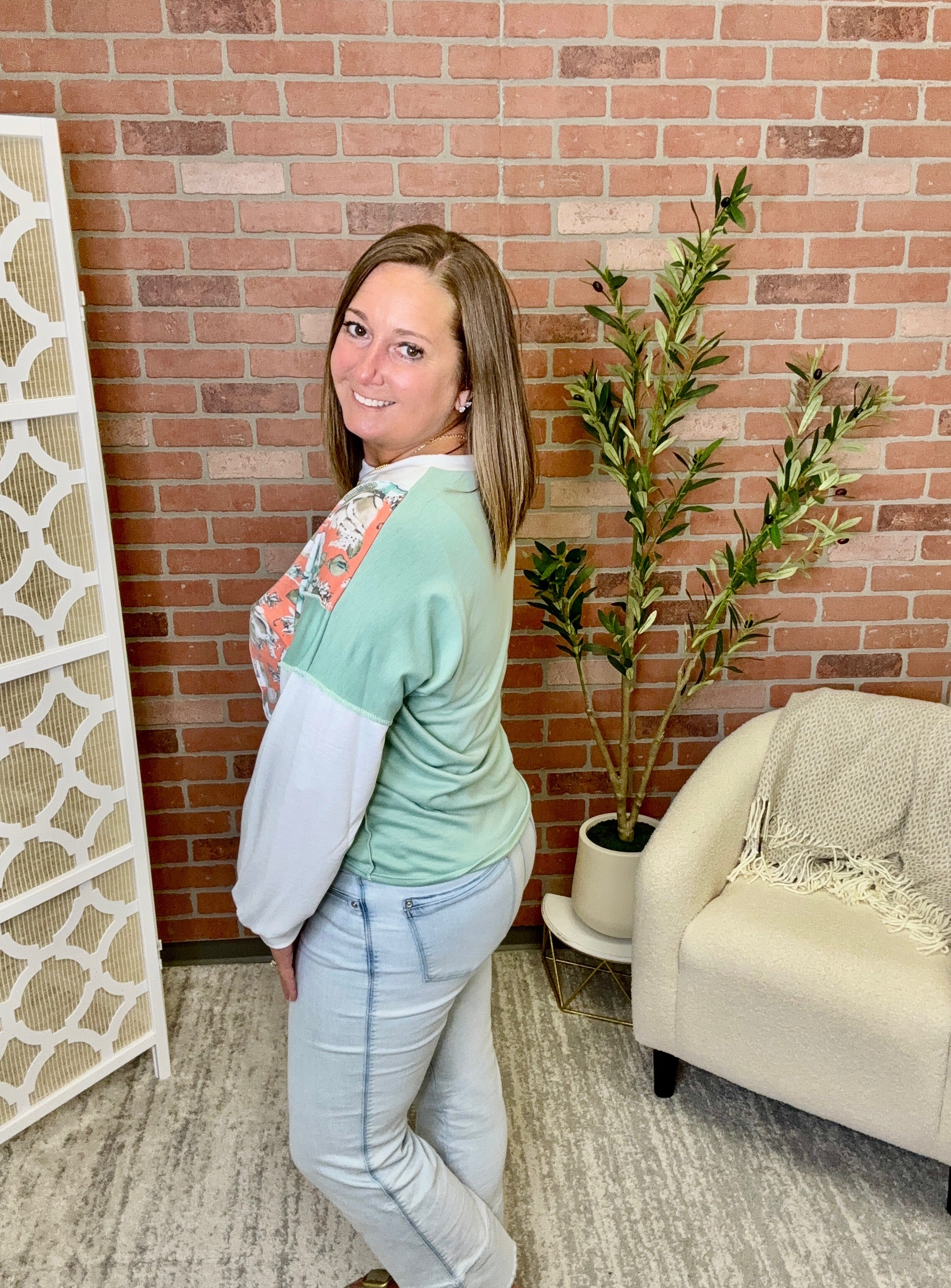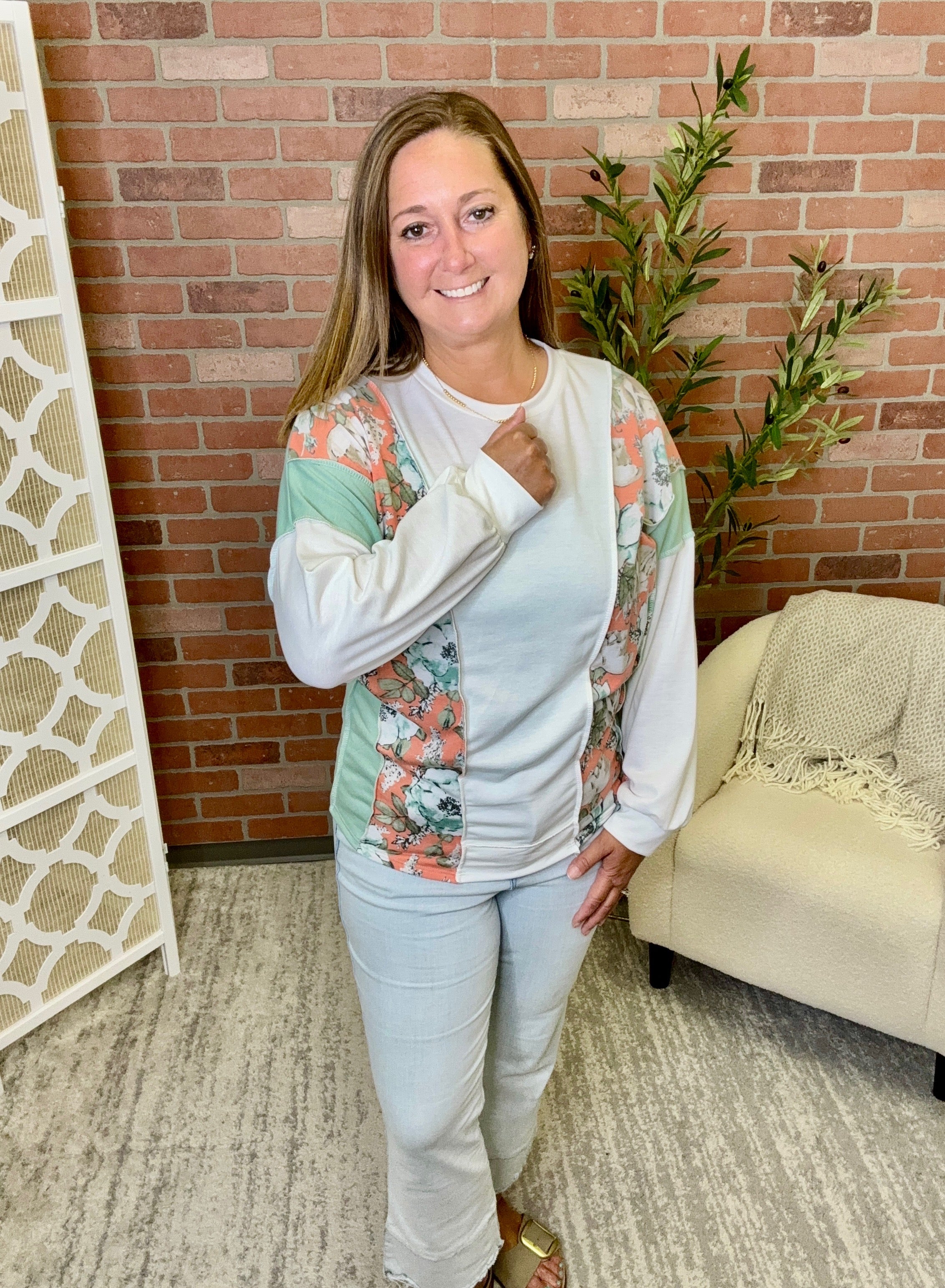 Brighten your wardrobe with this Floral Block Long Sleeve Pullover, featuring a fun patchwork of vibrant floral colors. Its cozy fit and playful design make it perfect for adding a cheerful touch to any casual day. Stay comfy and stylish with this eye-catching top that’s as lively as you are!