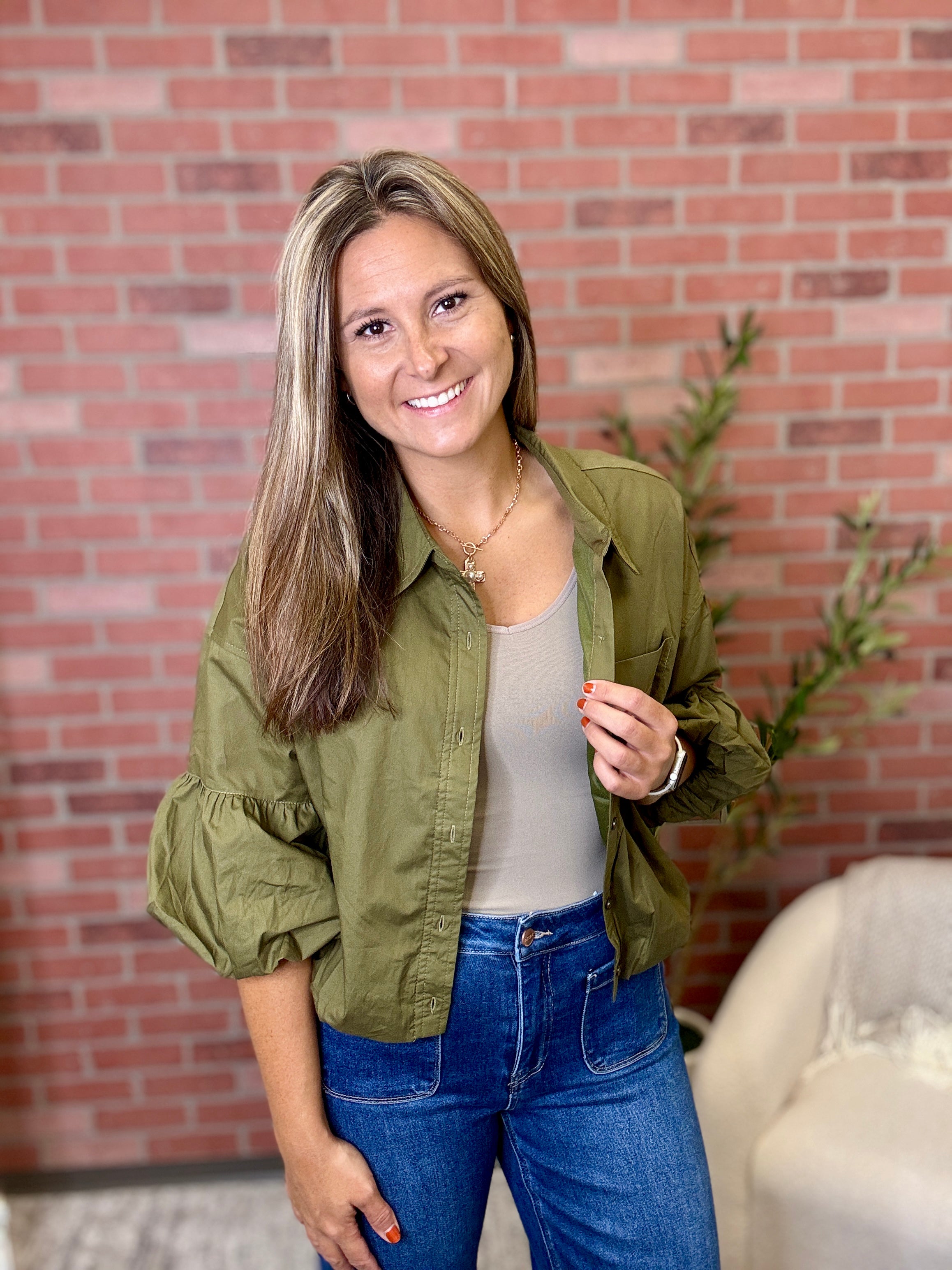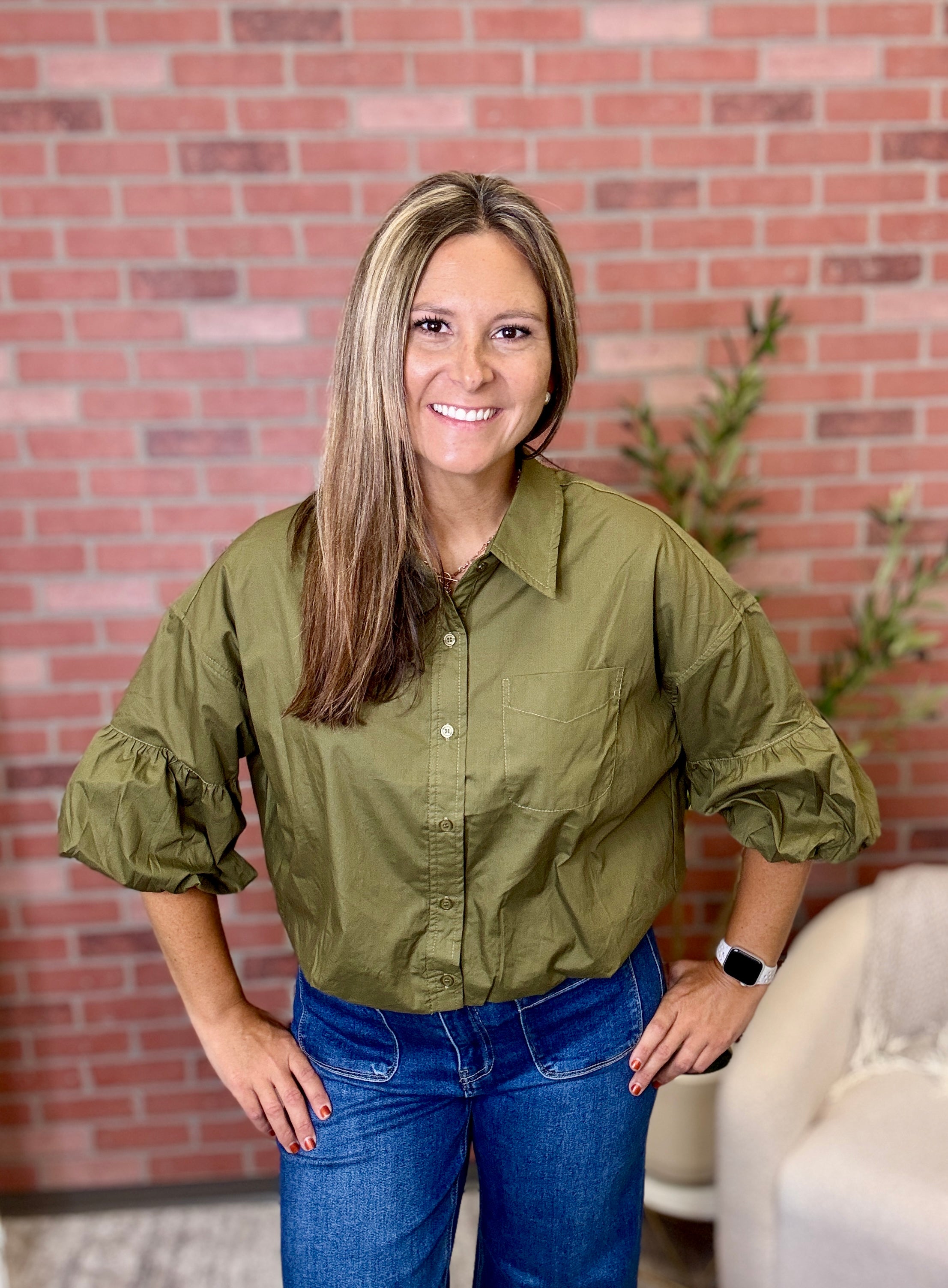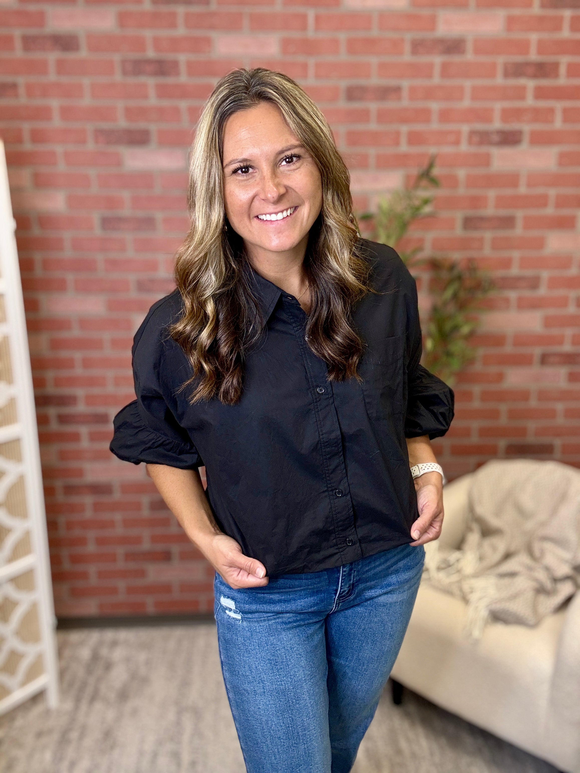 Add a fun twist to your wardrobe with this Half Bubble Button Blouse! Featuring playful bubble sleeves and a charming button-down front, it’s perfect for adding a flirty, lighthearted vibe to any outfit. Whether you’re dressing up for brunch or keeping it casual, this blouse makes everyday style a little more joyful.
