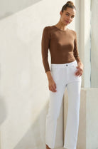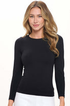 Layer up in our one size, seamless, crewneck. The seamless design molds to your body for a flattering fit
